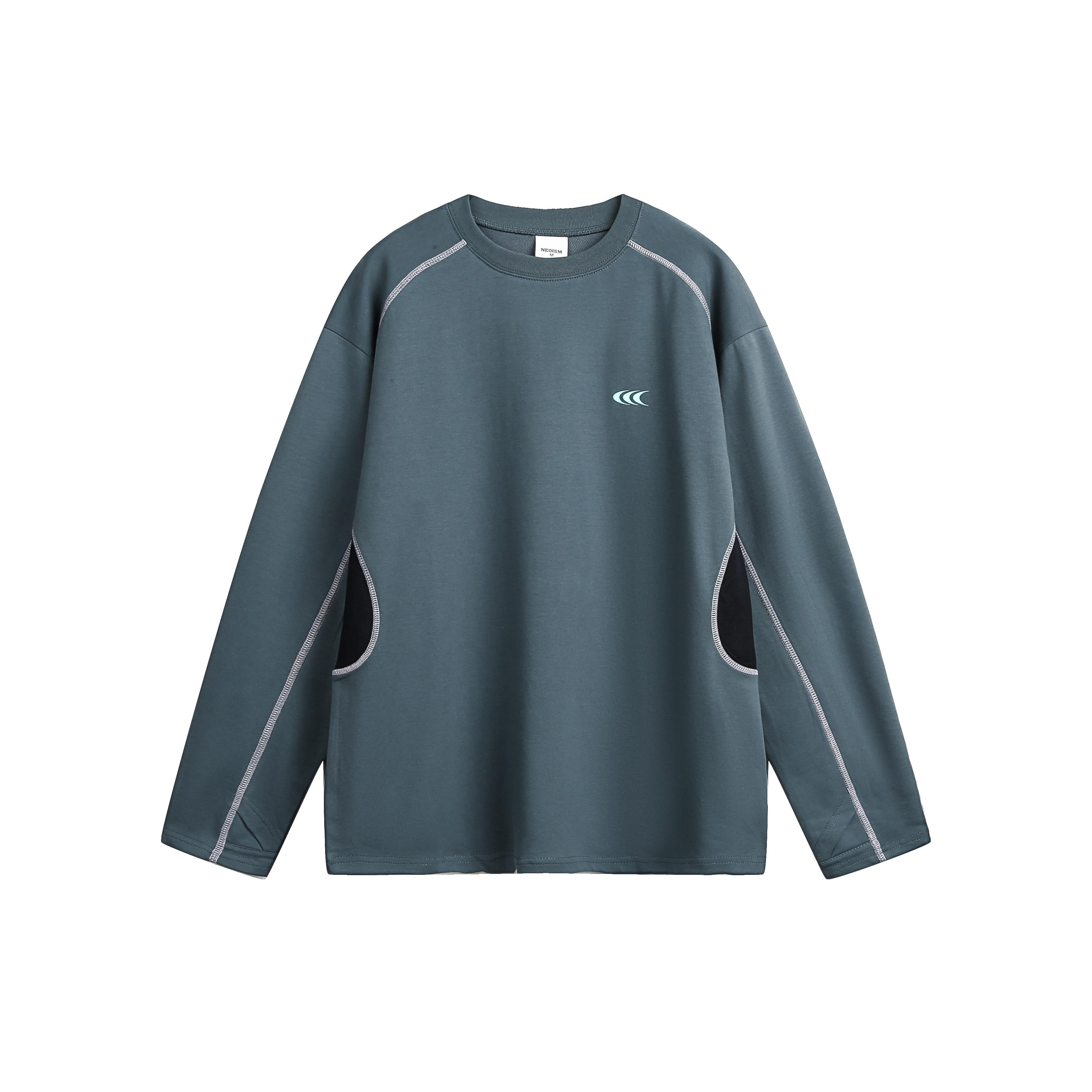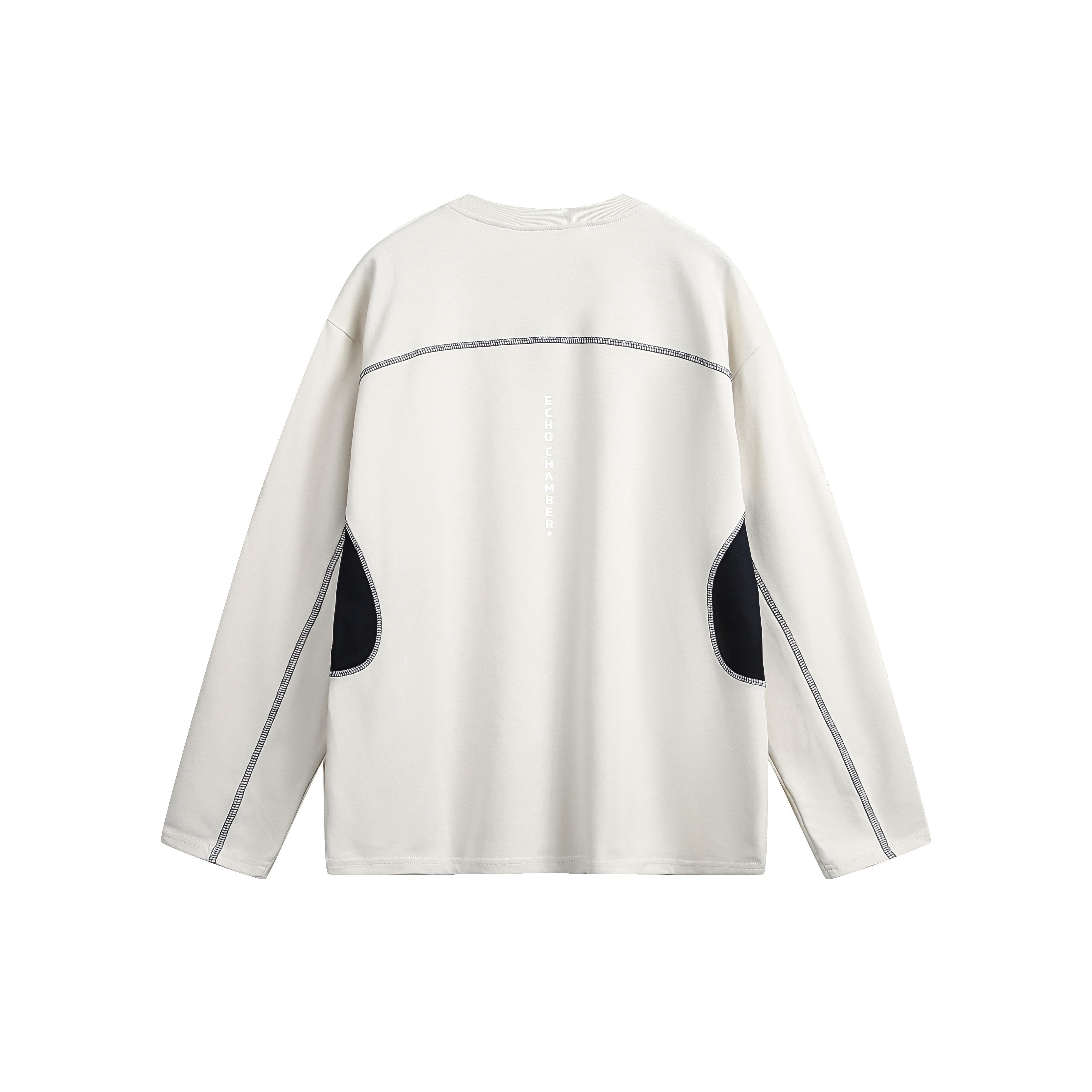 Wコントラストカラーラウンドネックパッチワーク長袖シャツ【韓流メンズスタイル】