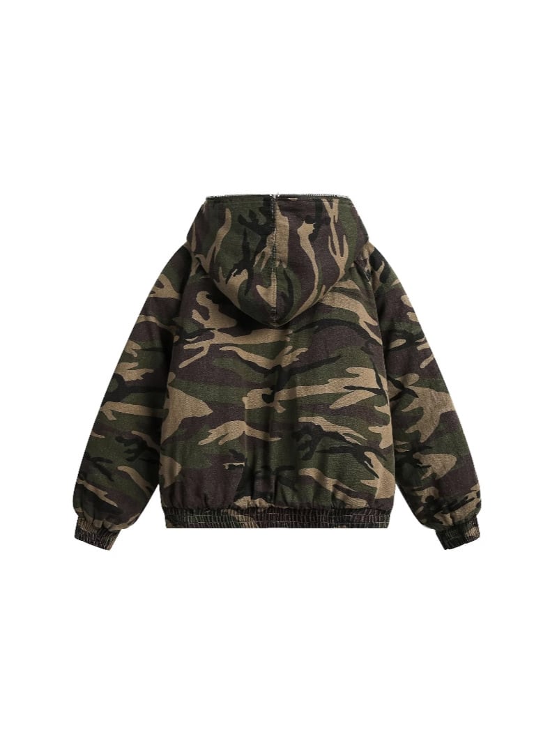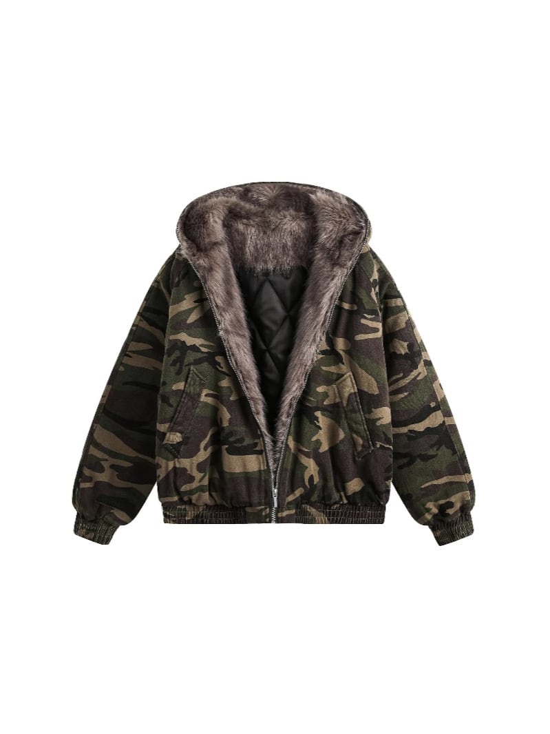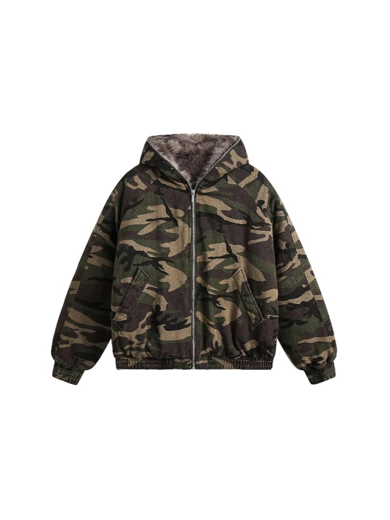 迷彩ファー付きフード厚手の綿ジャケット【韓流メンズスタイル】