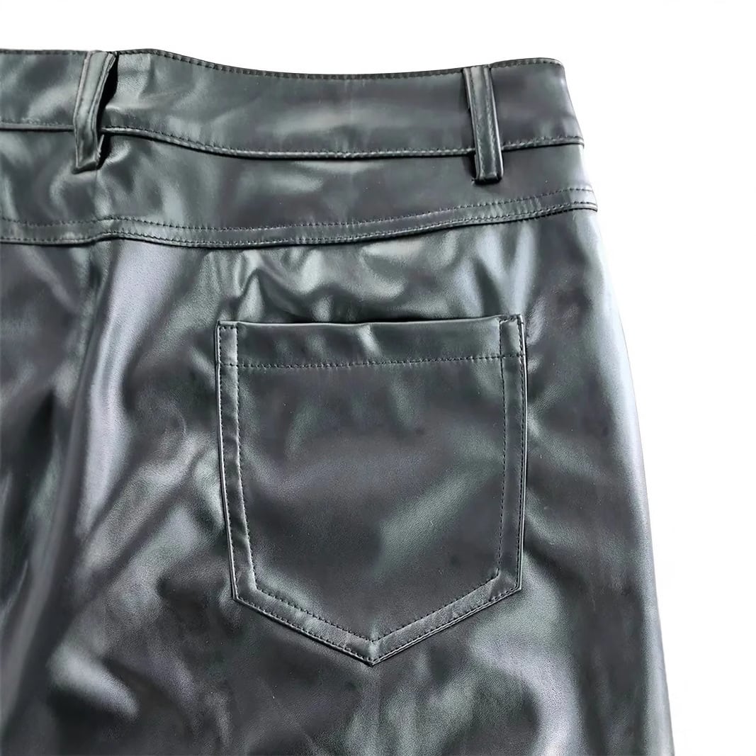 PUレザーパンツシリーズ ストレート【韓流メンズスタイル】
