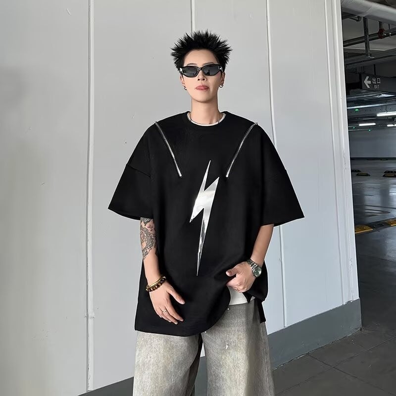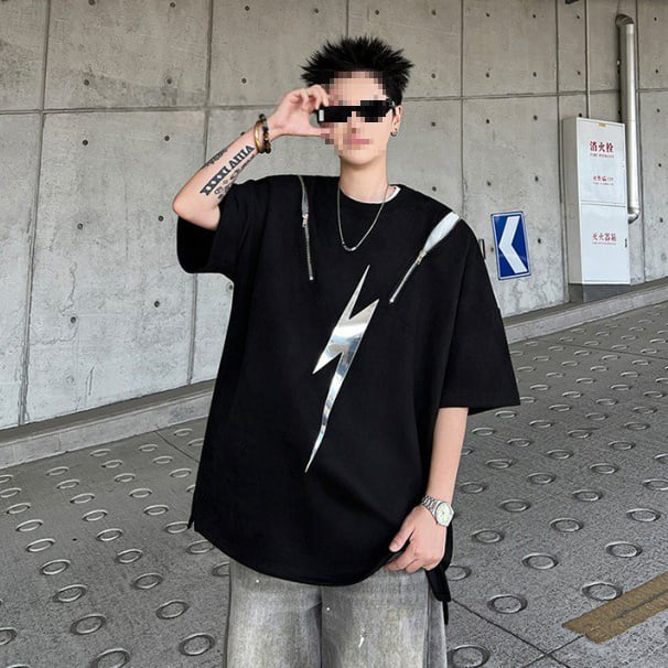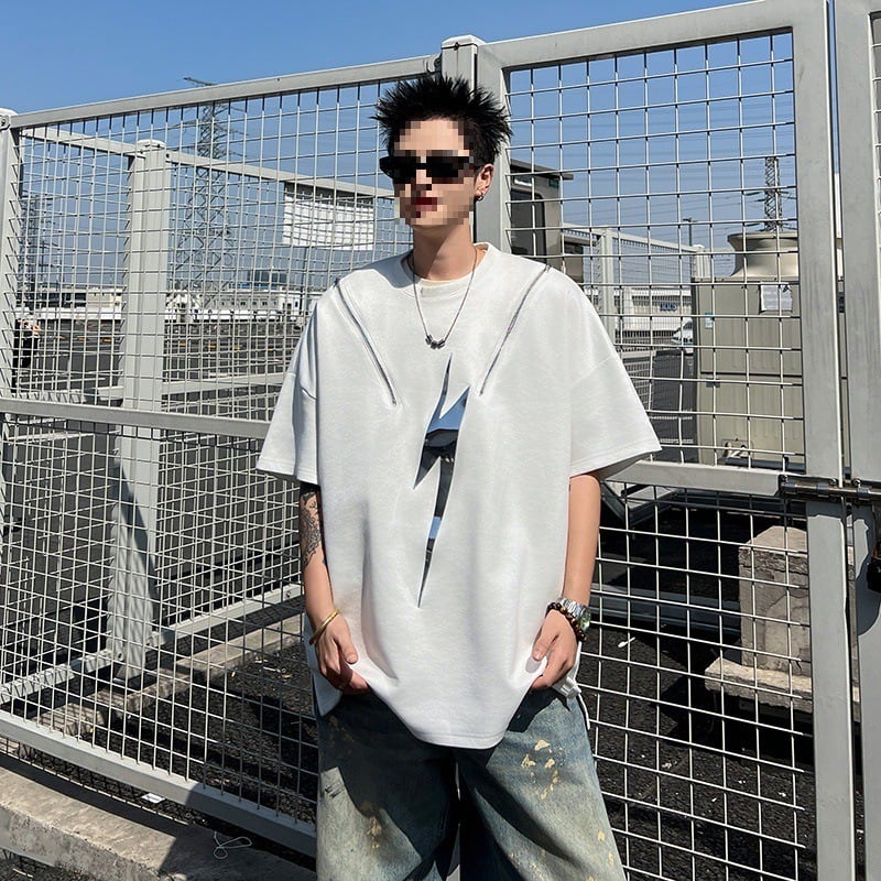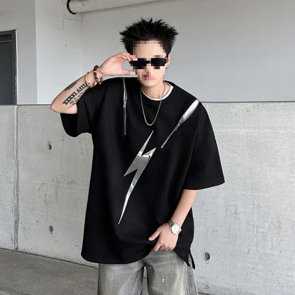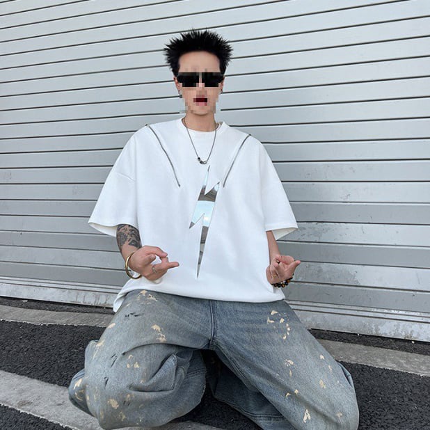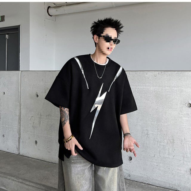 ヒップホップハイストリートラウンドネック半袖Tシャツ反射デザイン【韓流メンズスタイル】