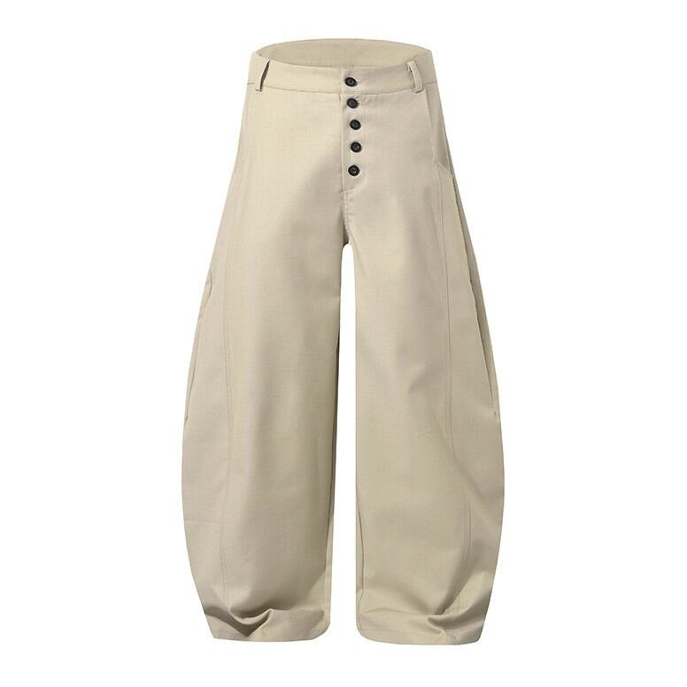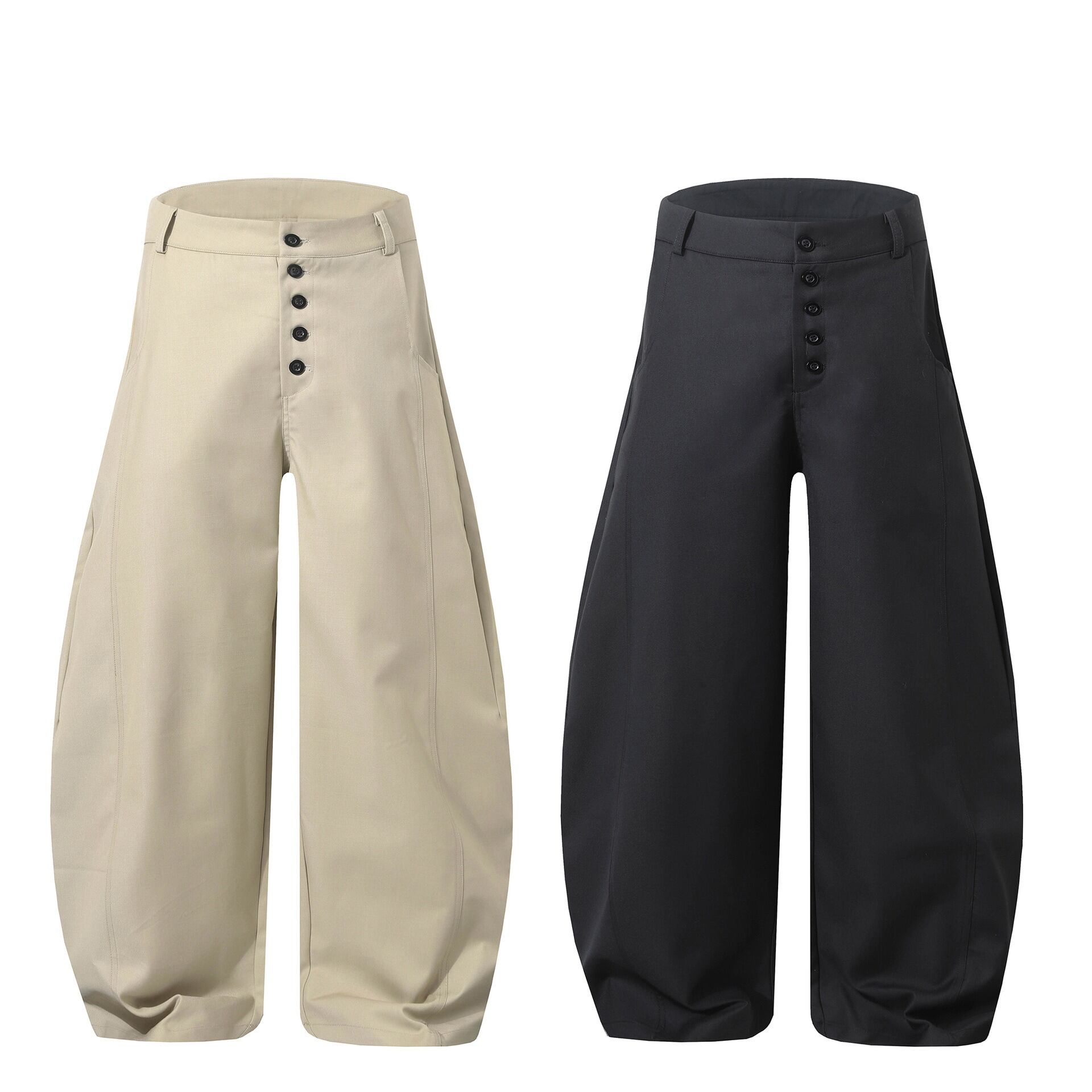 アメリカンレトロ ワイドレッグ ボタン付き シフォンパンツ ゆったり カジュアル ドレープパンツ【韓流メンズスタイル】