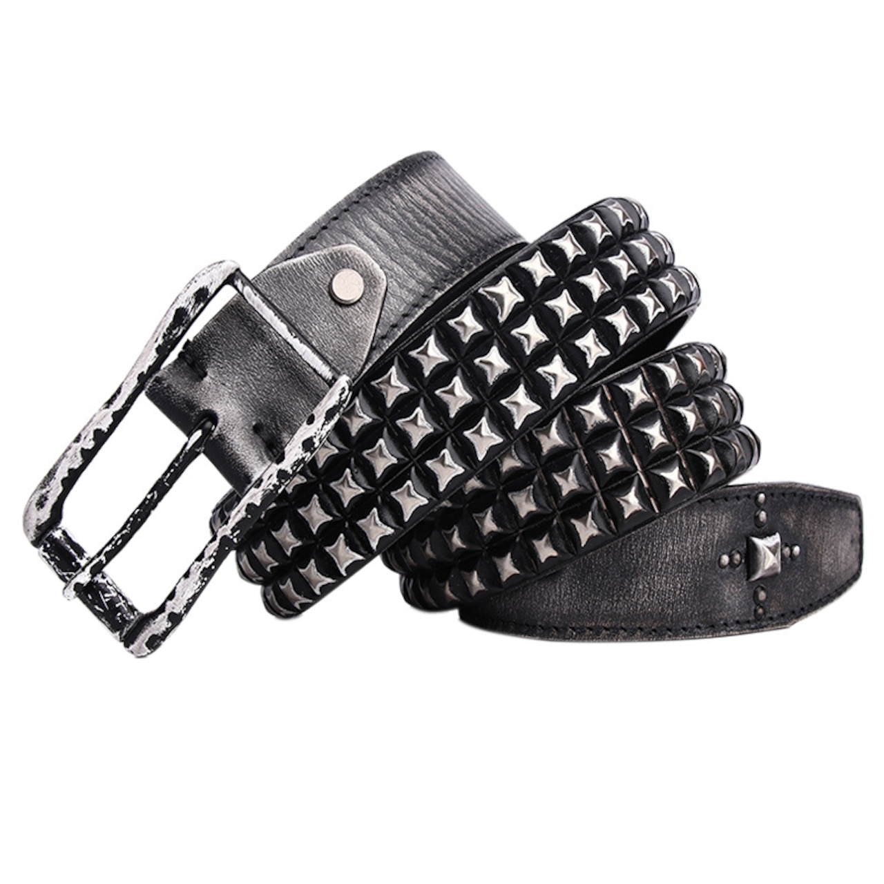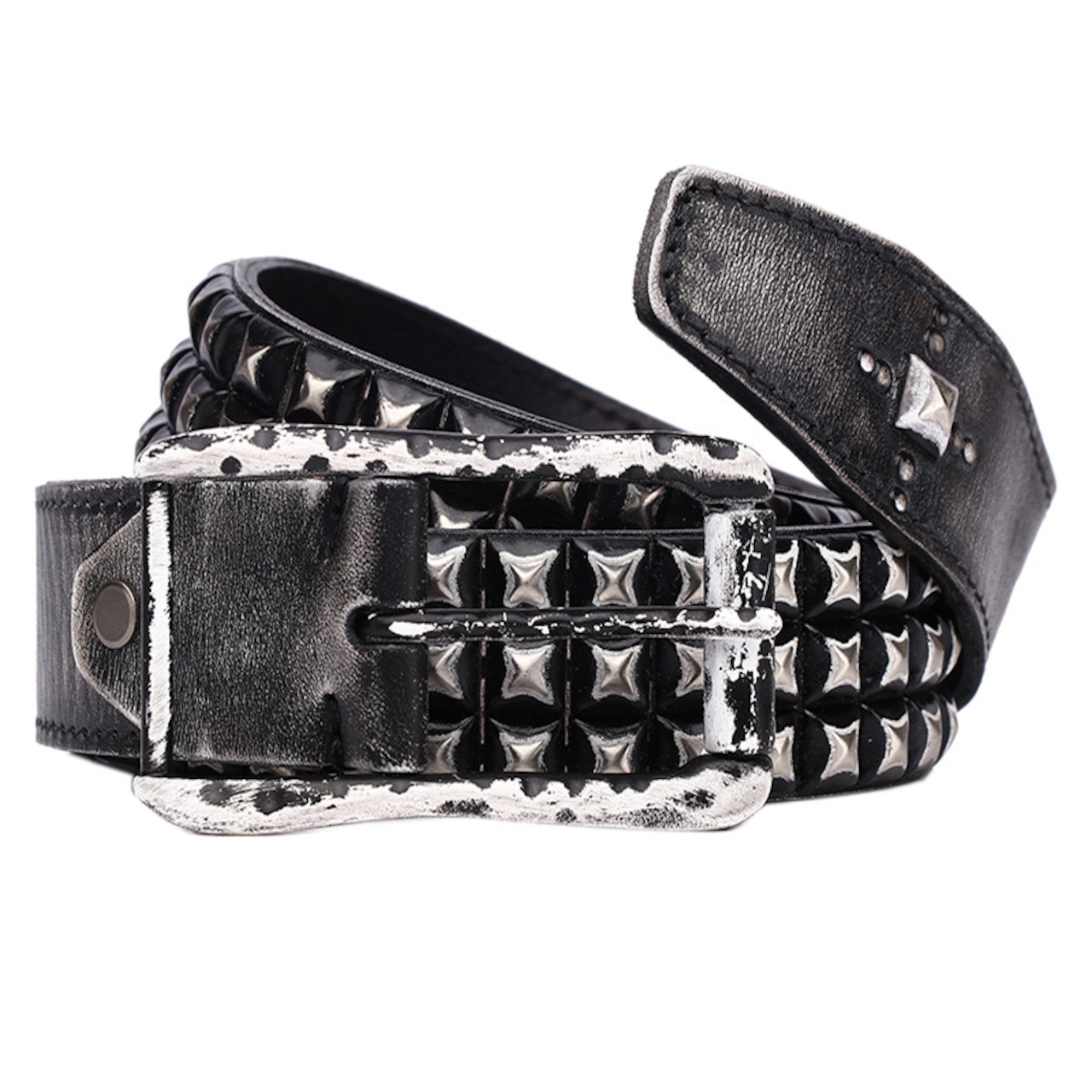 パンクリベット牛革ベルト贅沢装飾【韓流メンズスタイル】