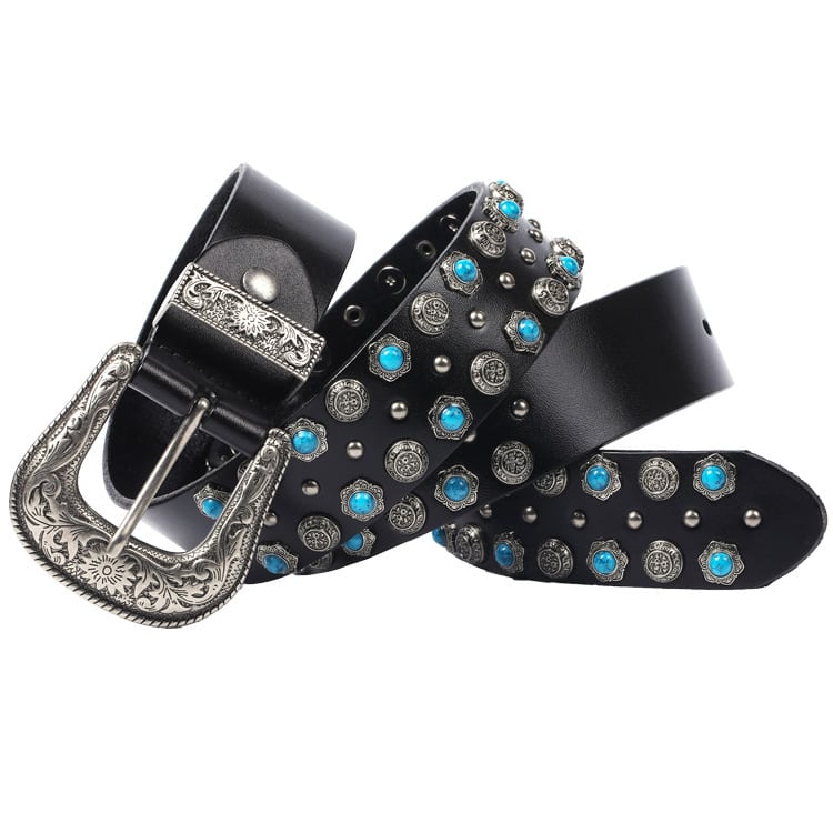 ターコイズリベットとメタルリベットのベルト【韓流メンズスタイル】