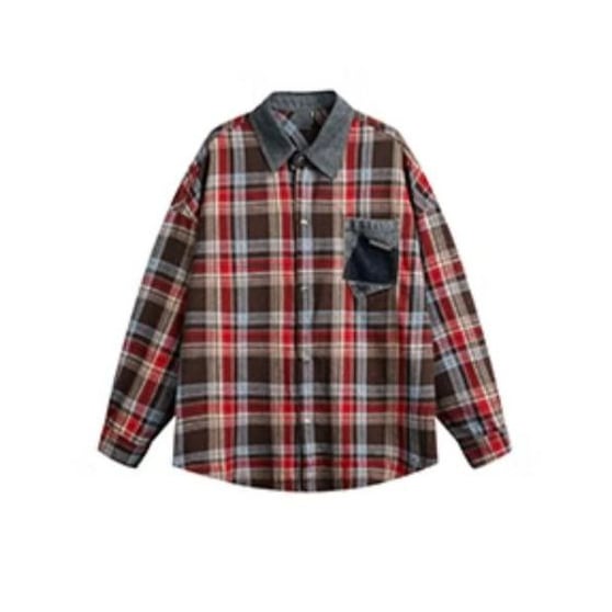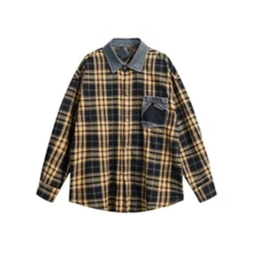 オーバーサイズド タータン・シャツ【韓流メンズスタイル】denimカラー