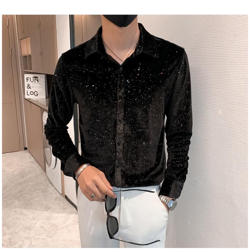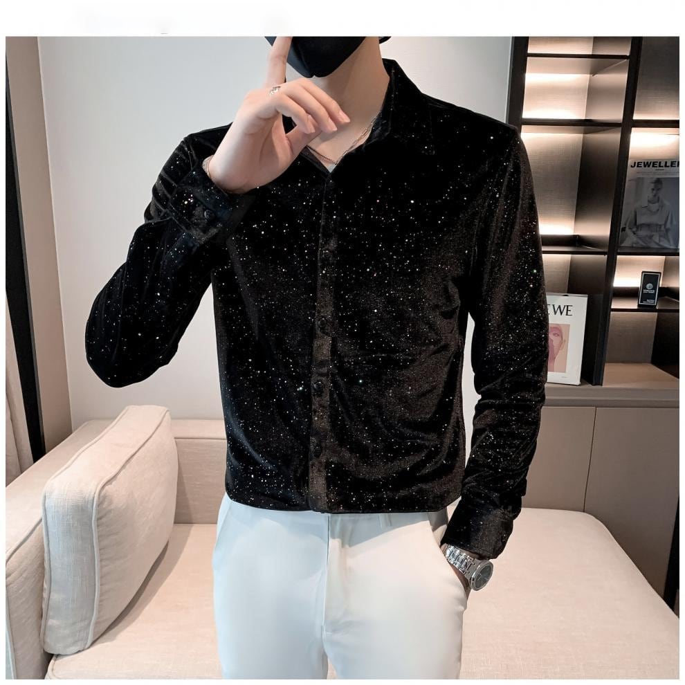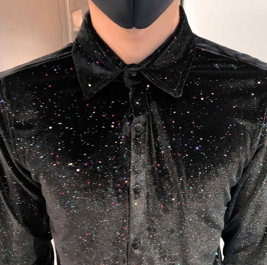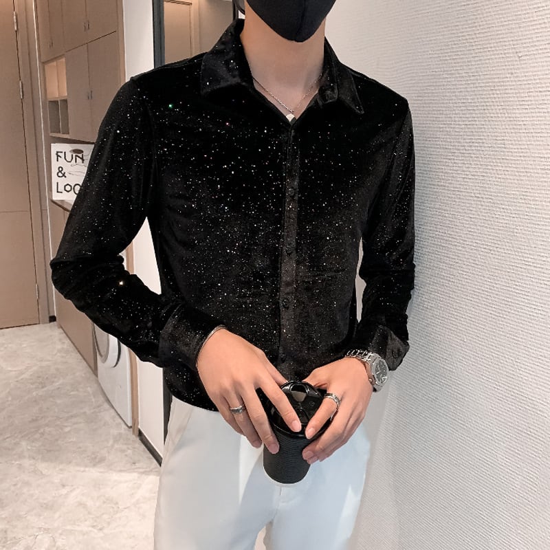 満天の星スパンコールのシャツ【韓流メンズスタイル】