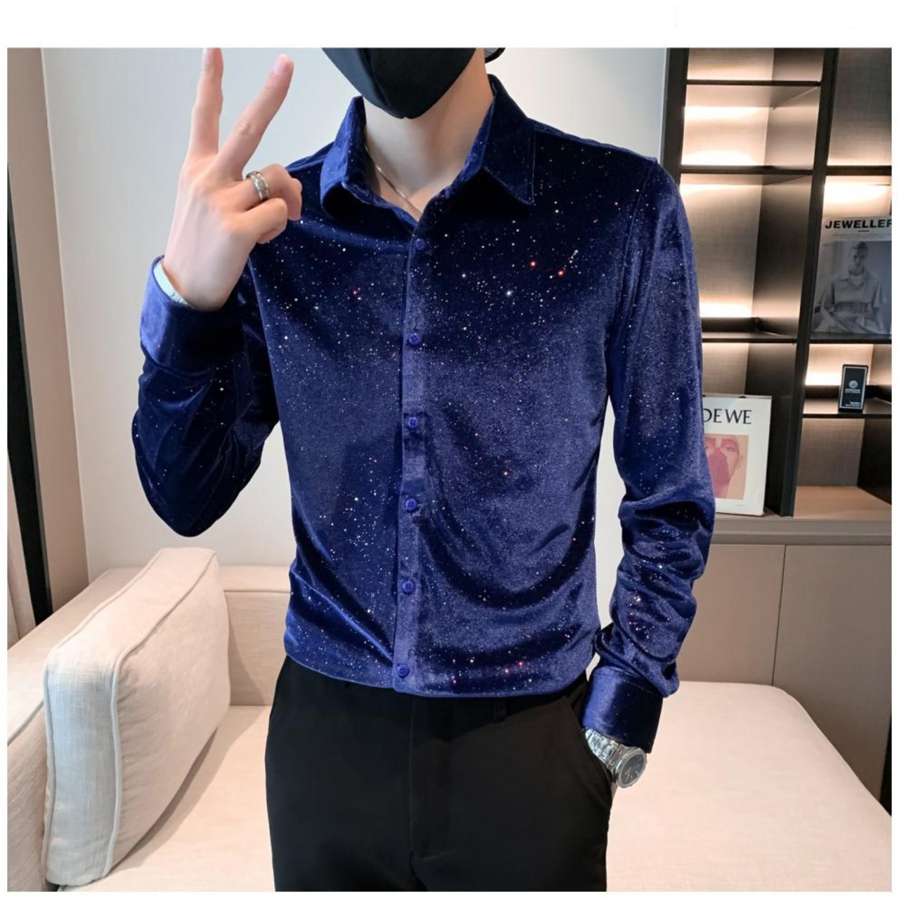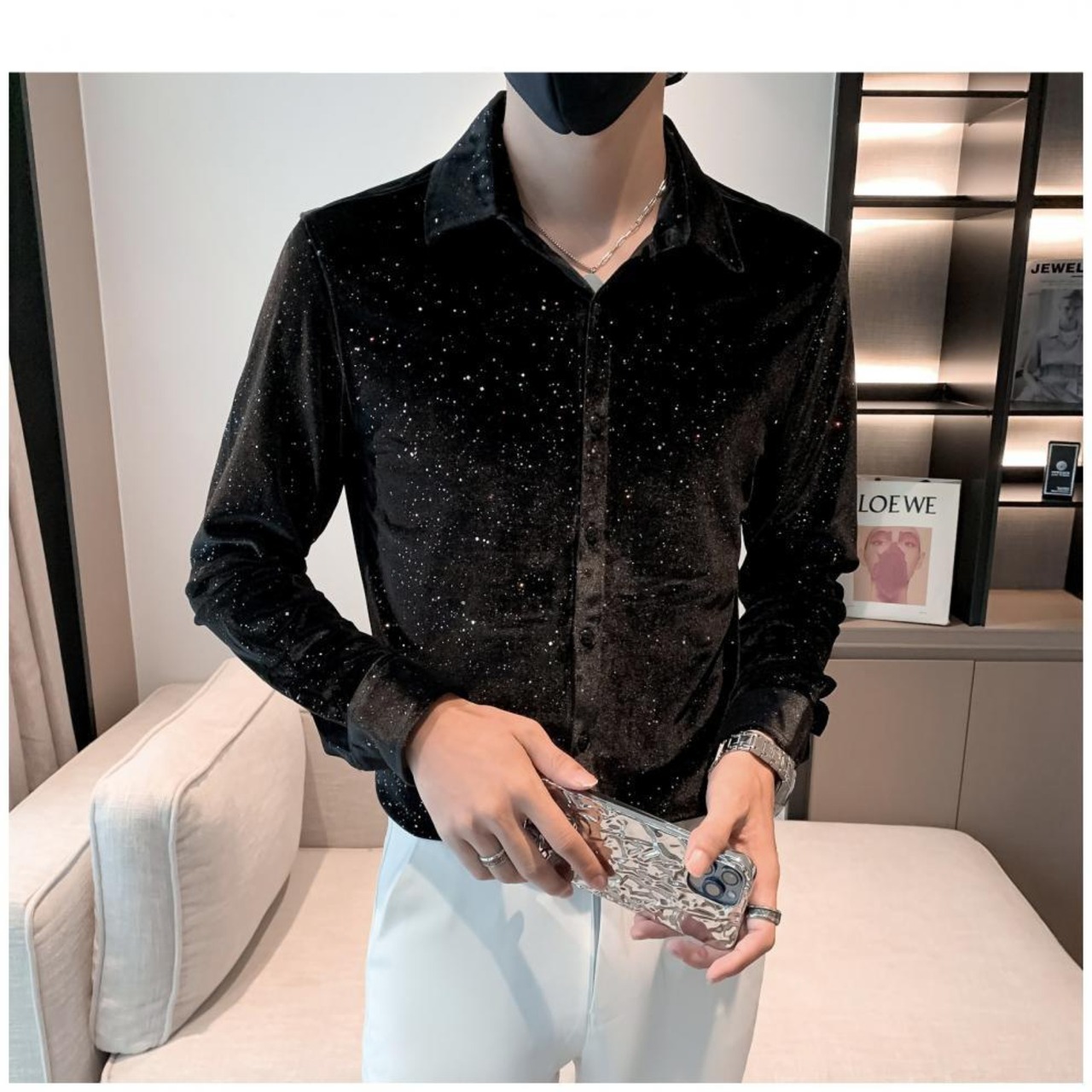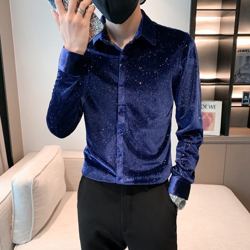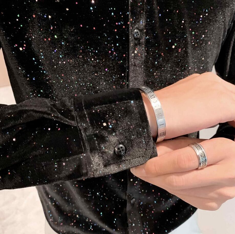満天の星スパンコールのシャツ【韓流メンズスタイル】