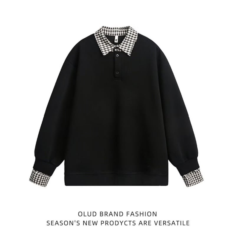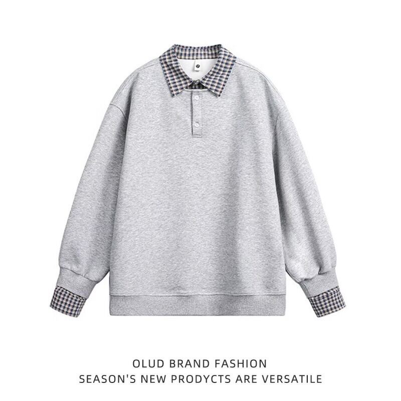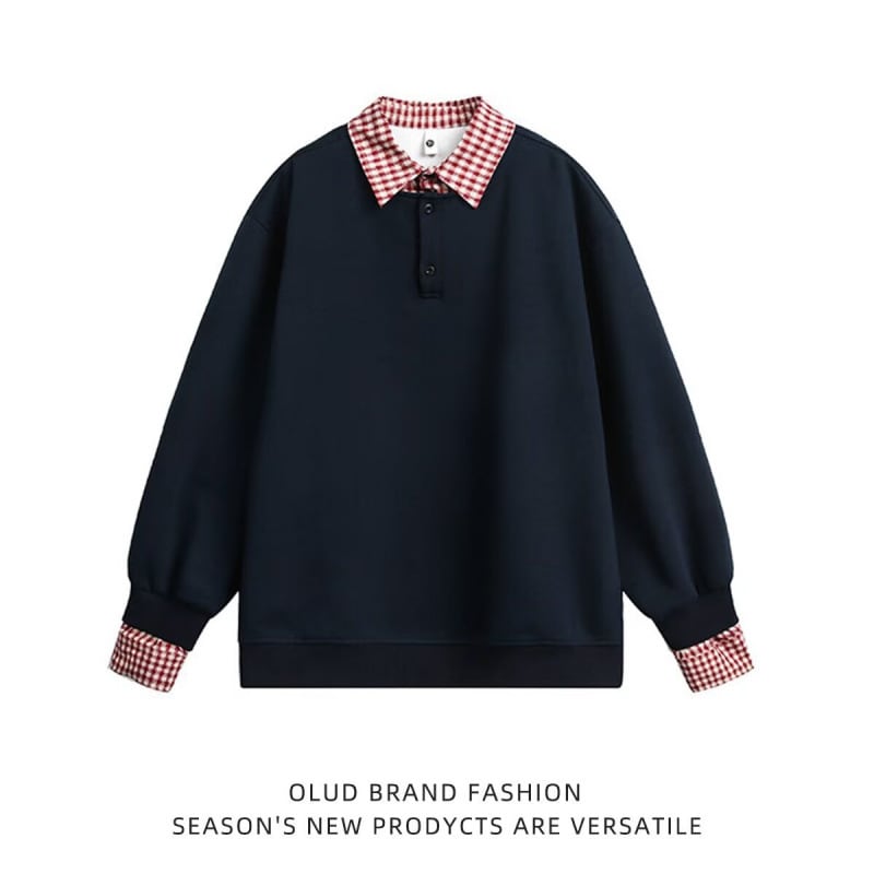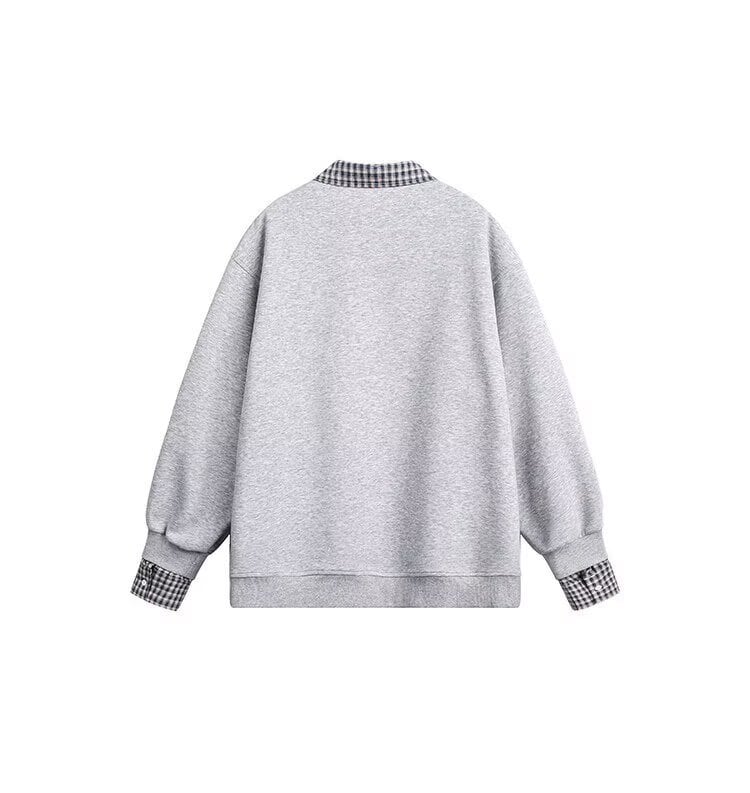 アメリカンレトロステッチフェイクツーピーススウェットシャツ【韓流メンズスタイル】