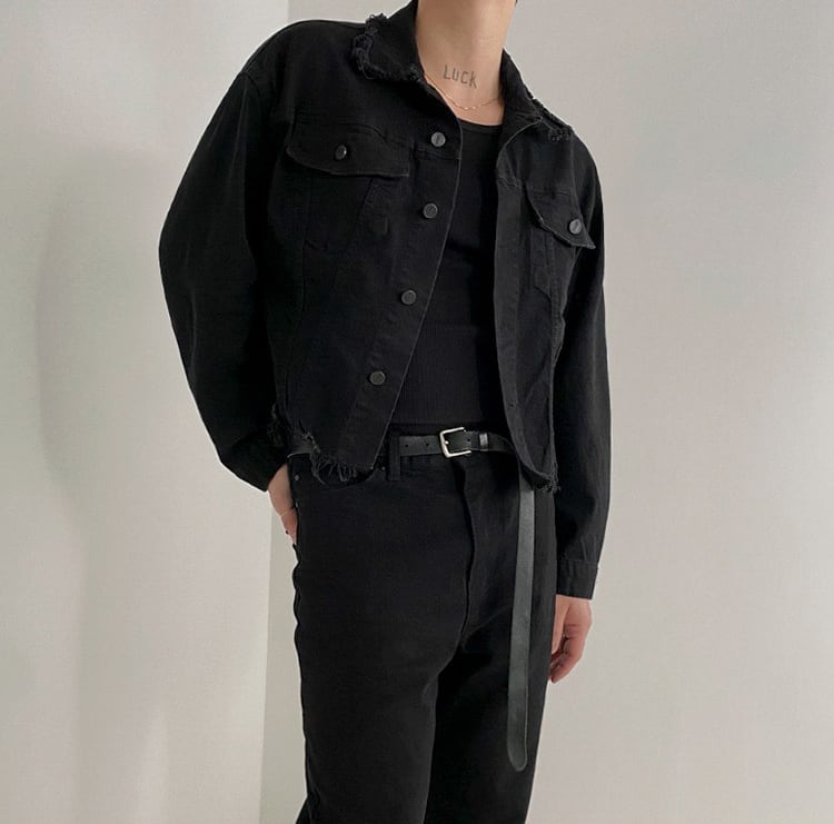 ブラックルーズデニムジャケット【韓流メンズファッション】
