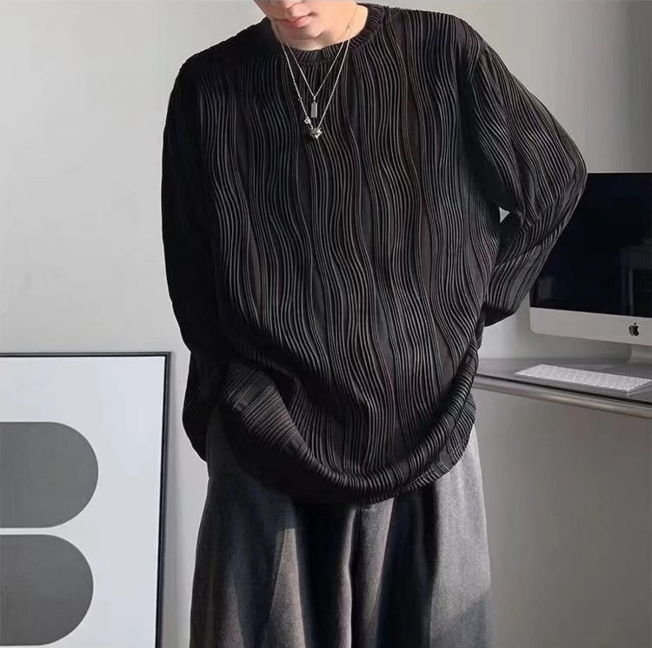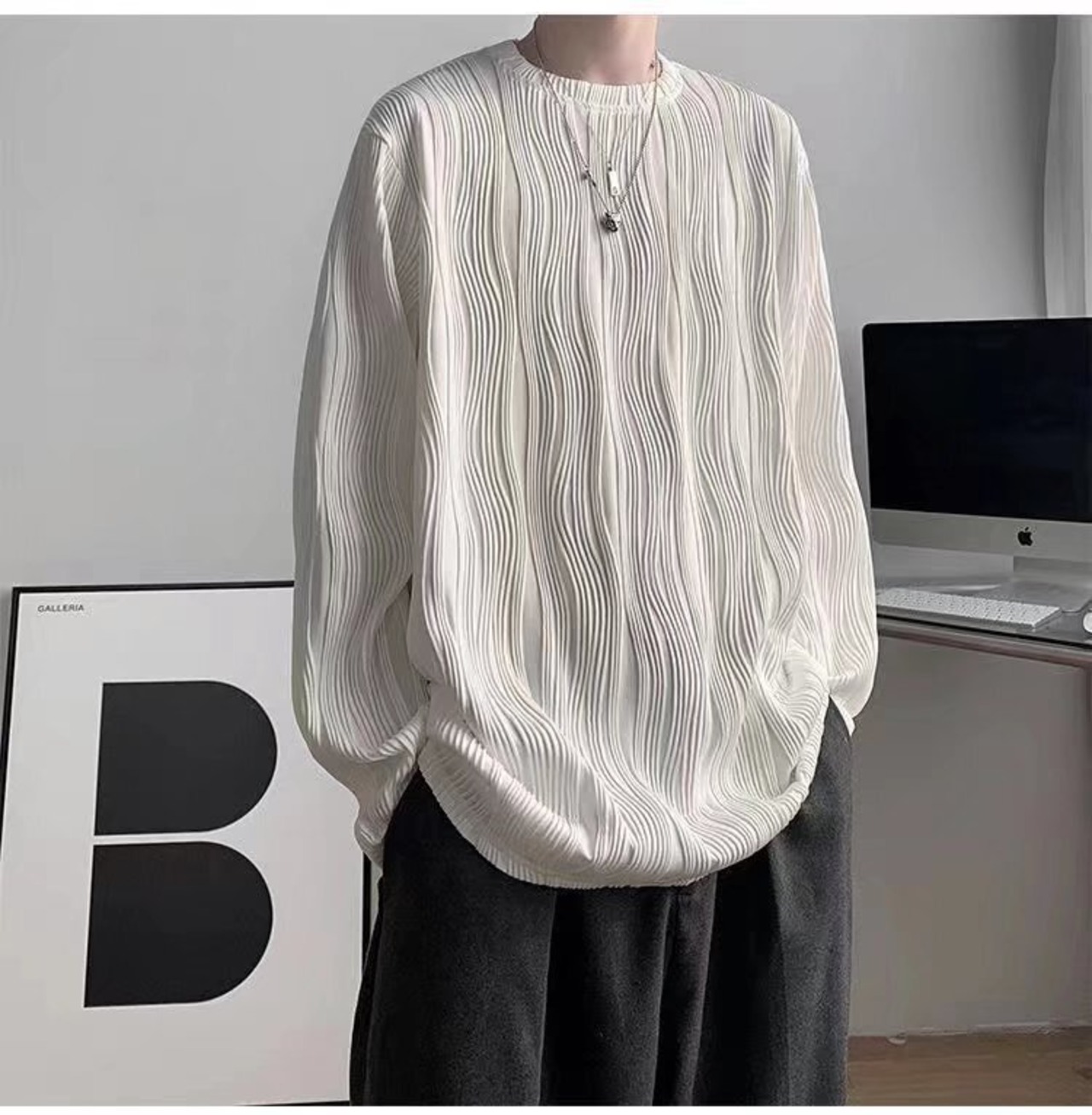 ラウンドネック長袖Tシャツ【韓流メンズファッション】