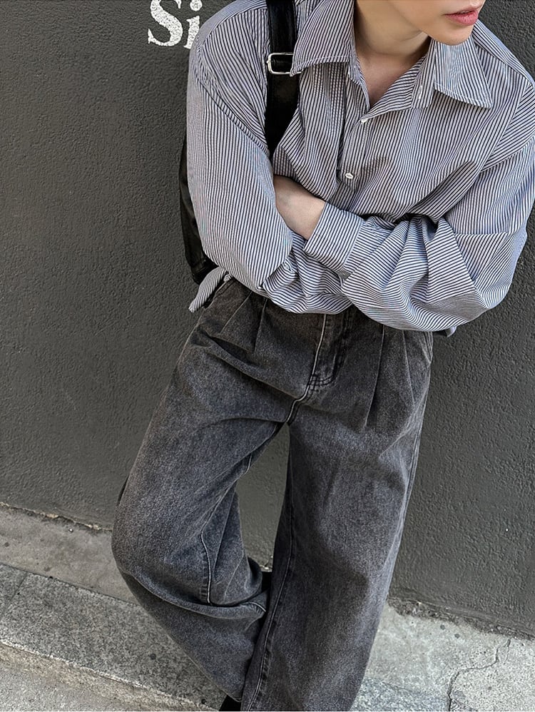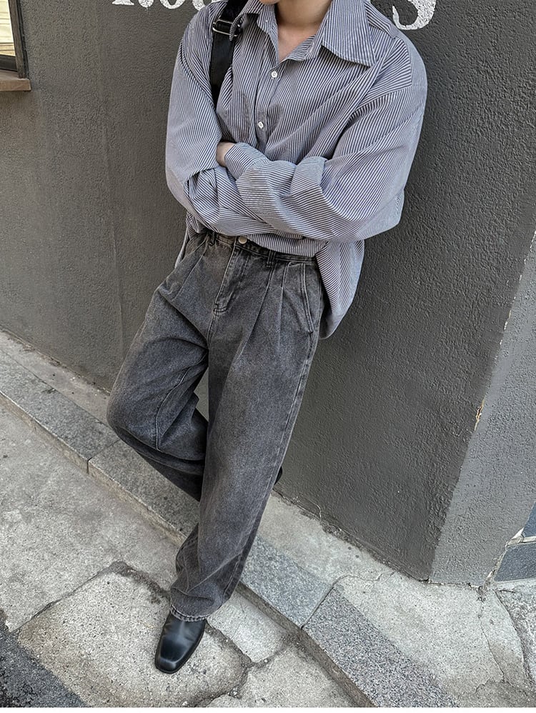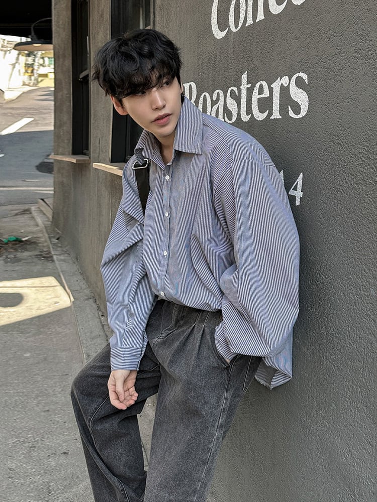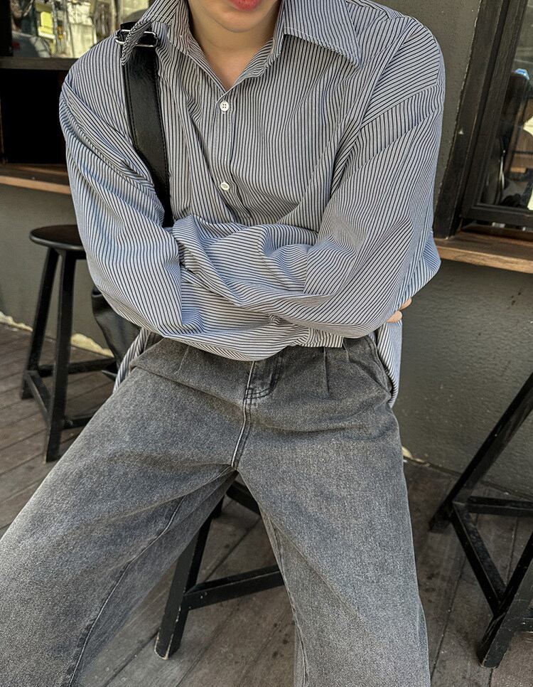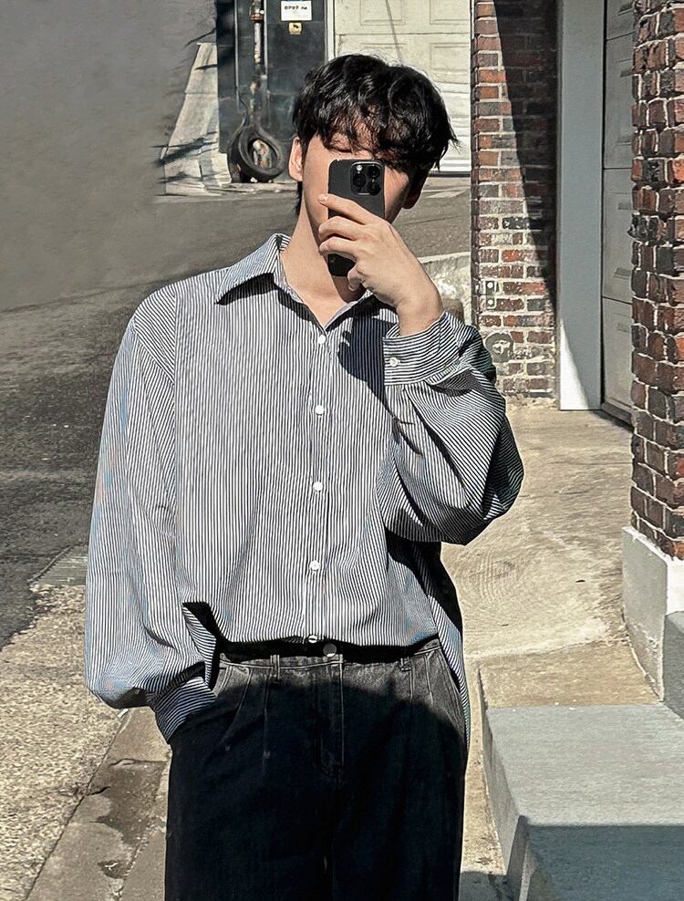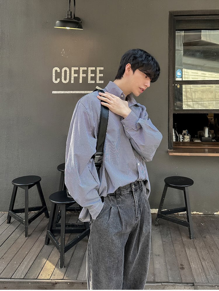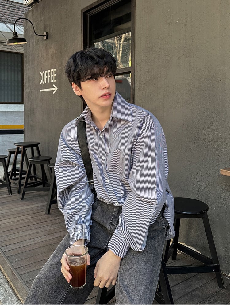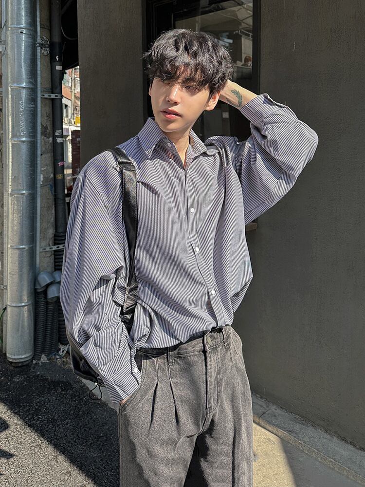 ストライプカジュアルシャツ長袖【韓流メンズファッション】