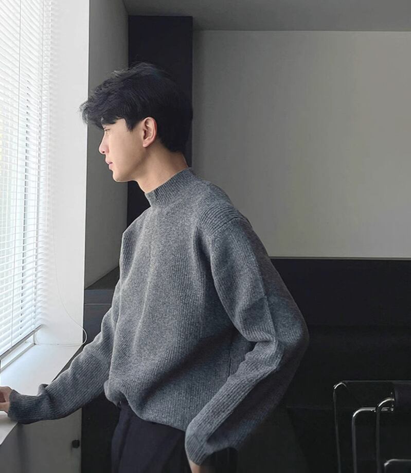 半高襟のウールニットセーター【韓流メンズファッション】