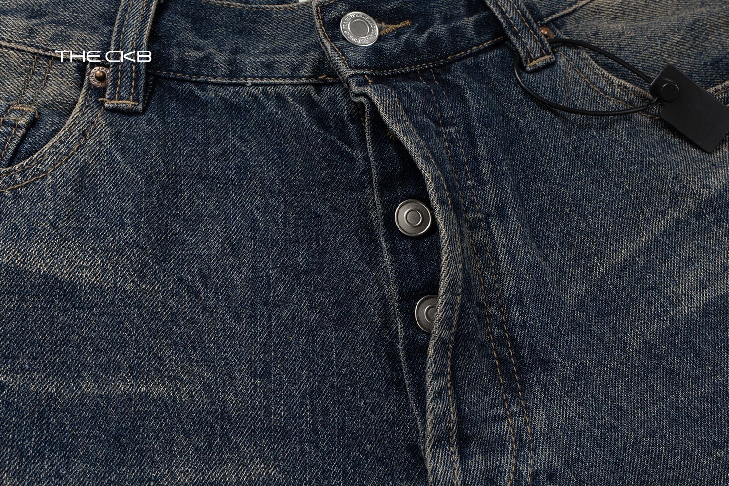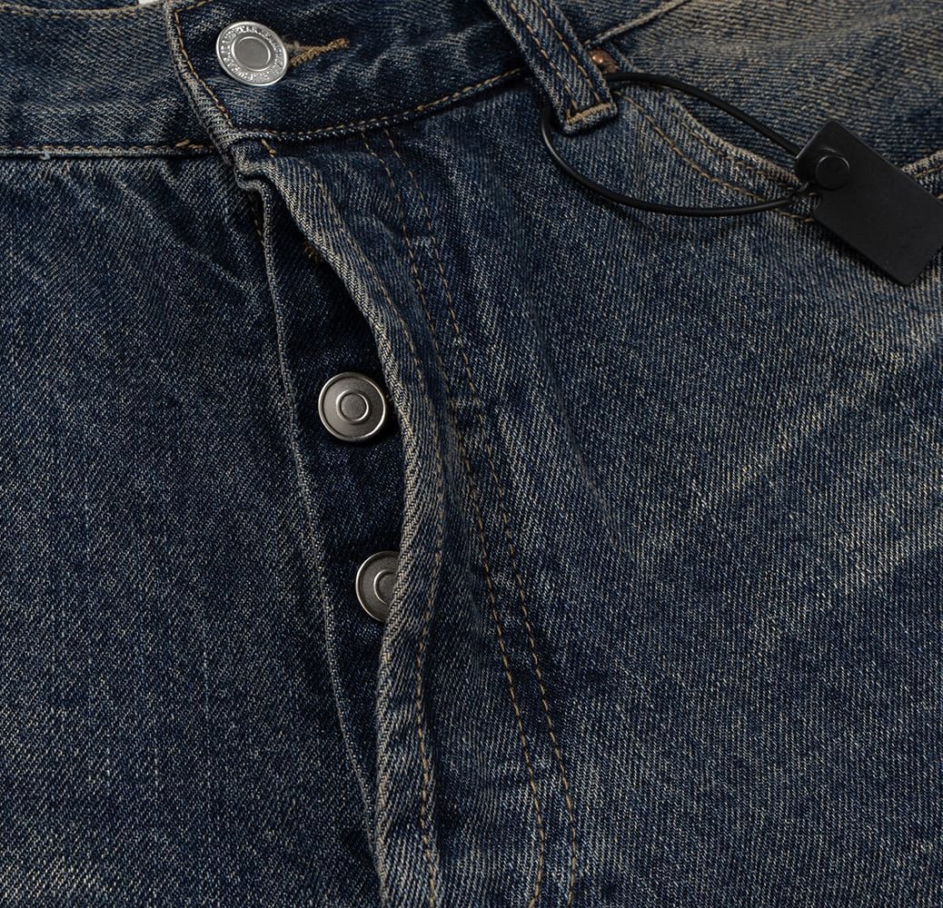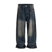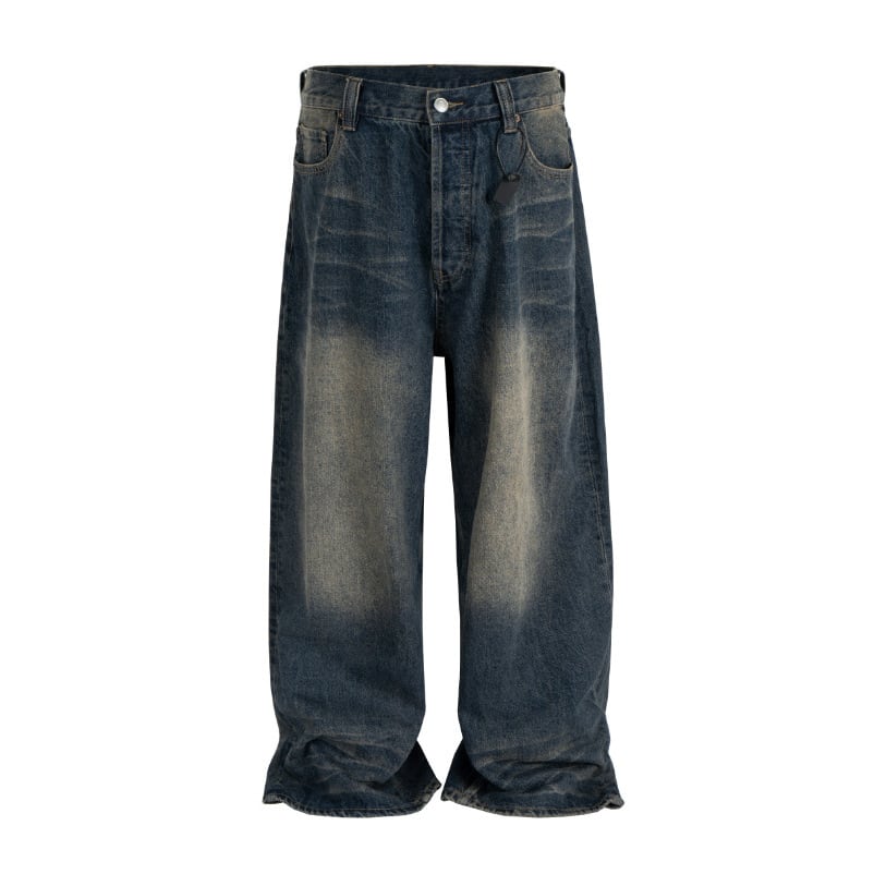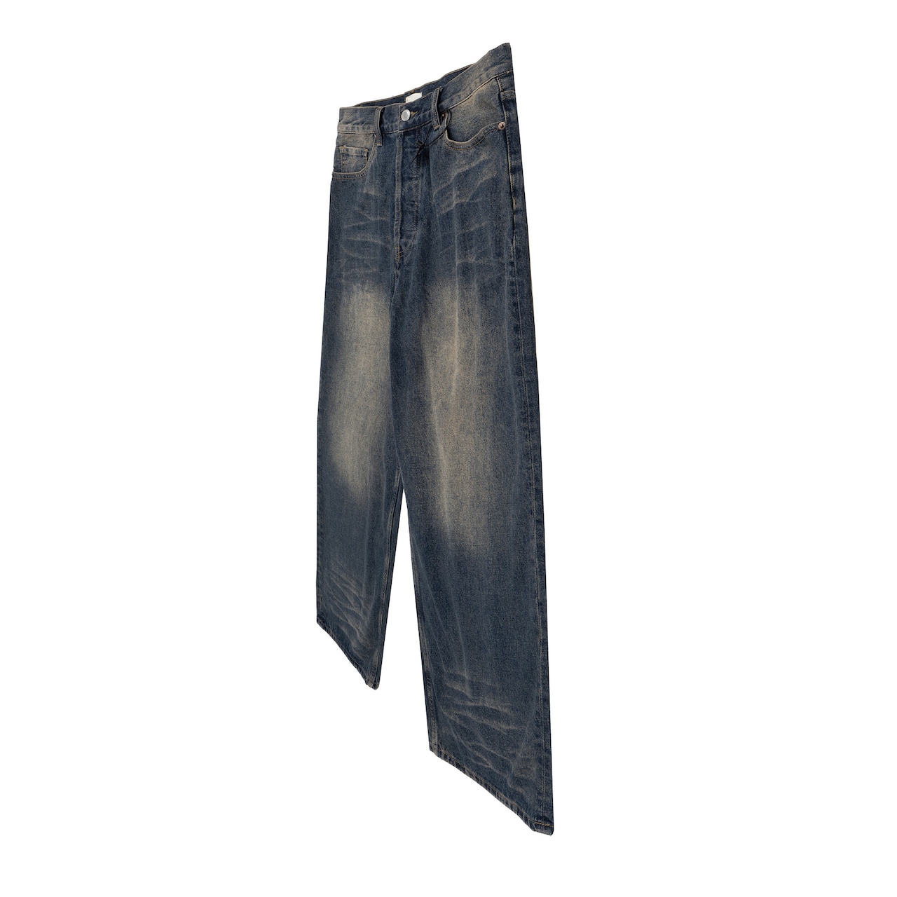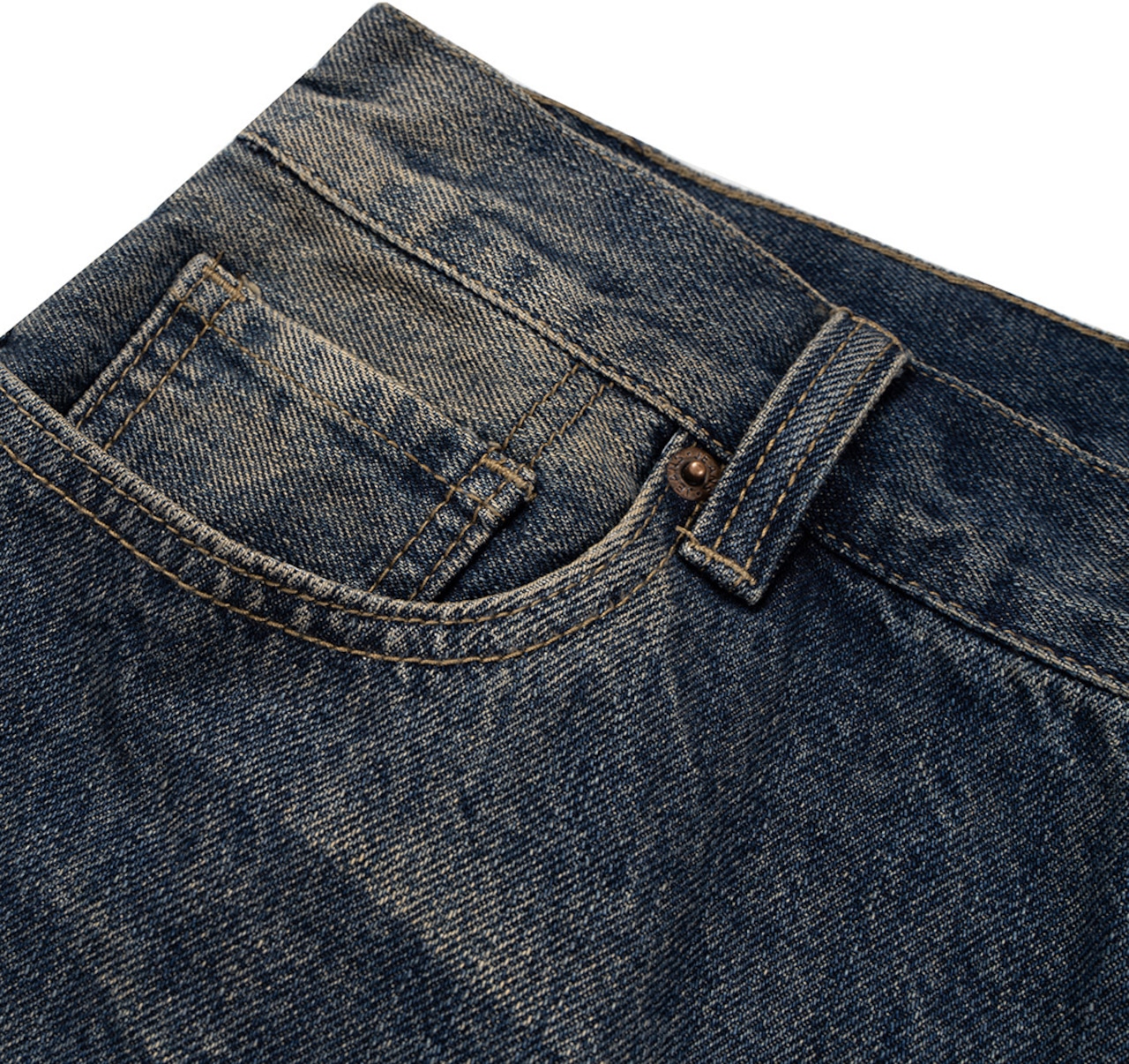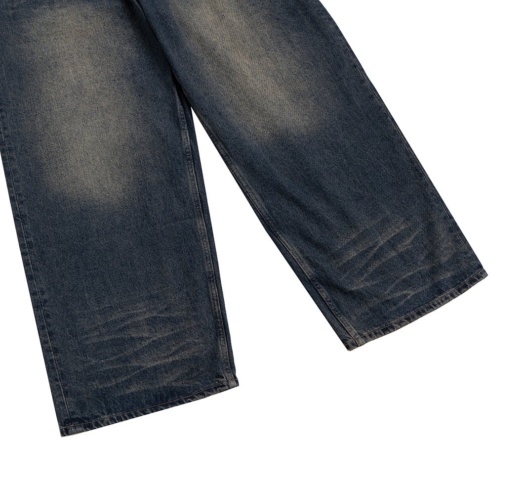 レザーポケット ダメージウォッシュダークブルーダーティパンツ【韓流メンズファッション】