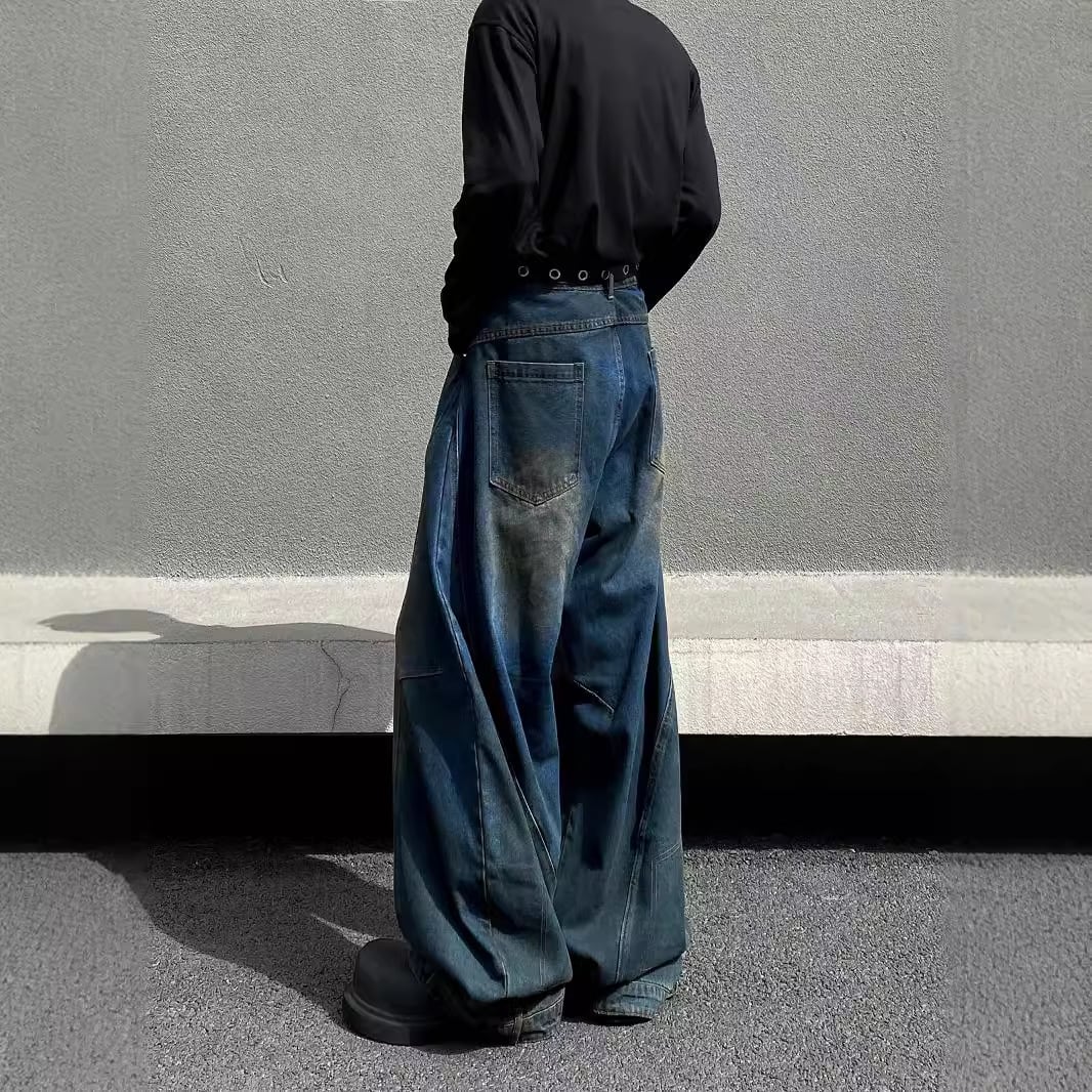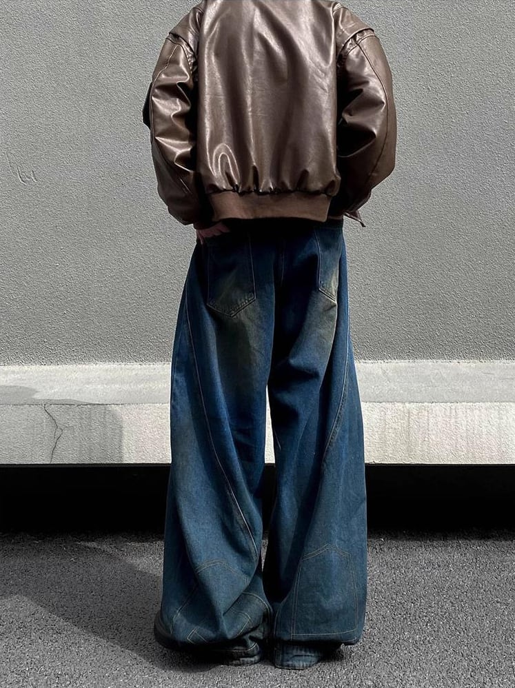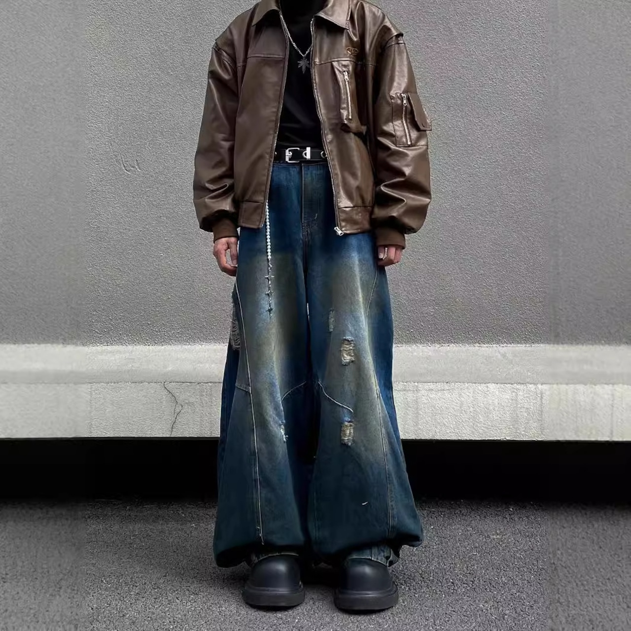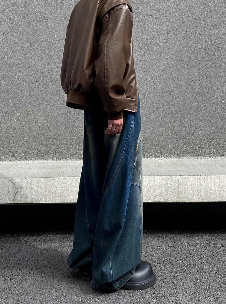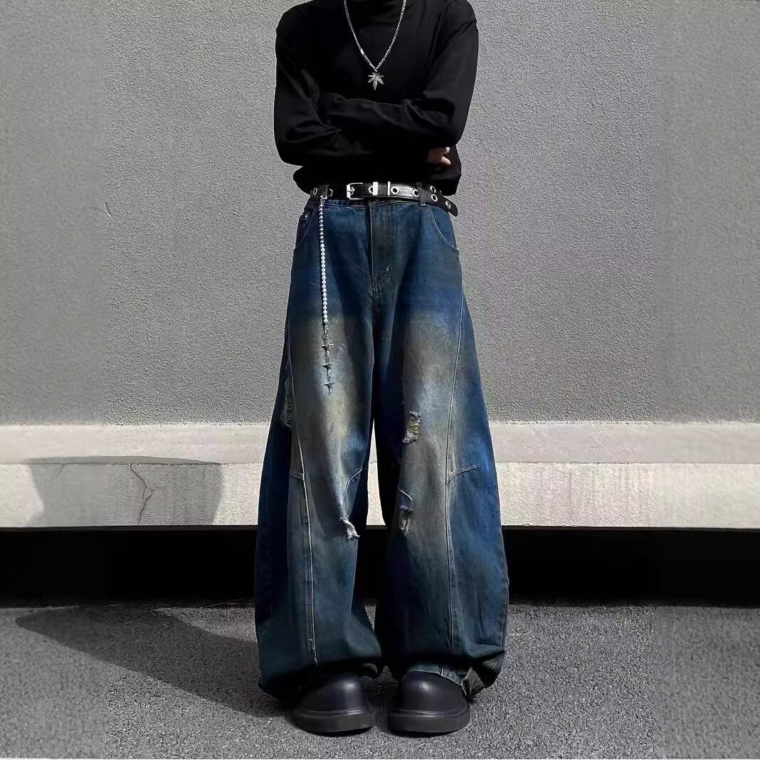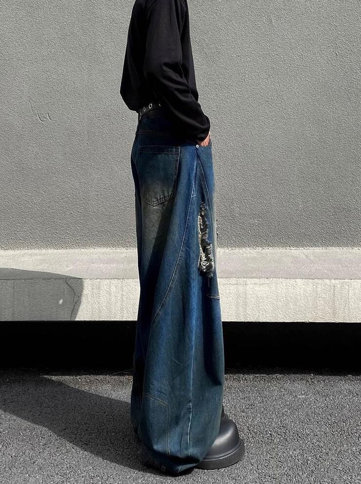 レトロダメージ加工・ストレートルーズワイドパンツ【韓流メンズファッション】