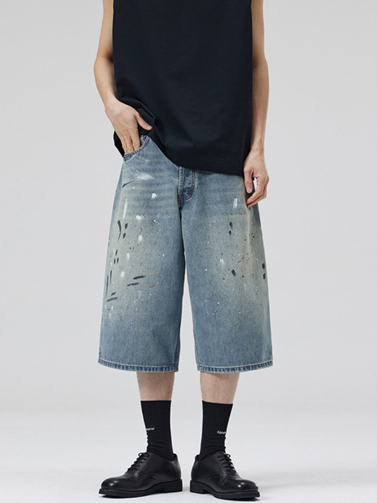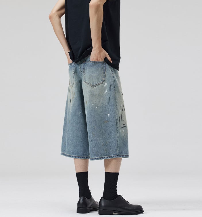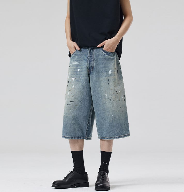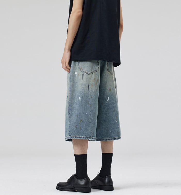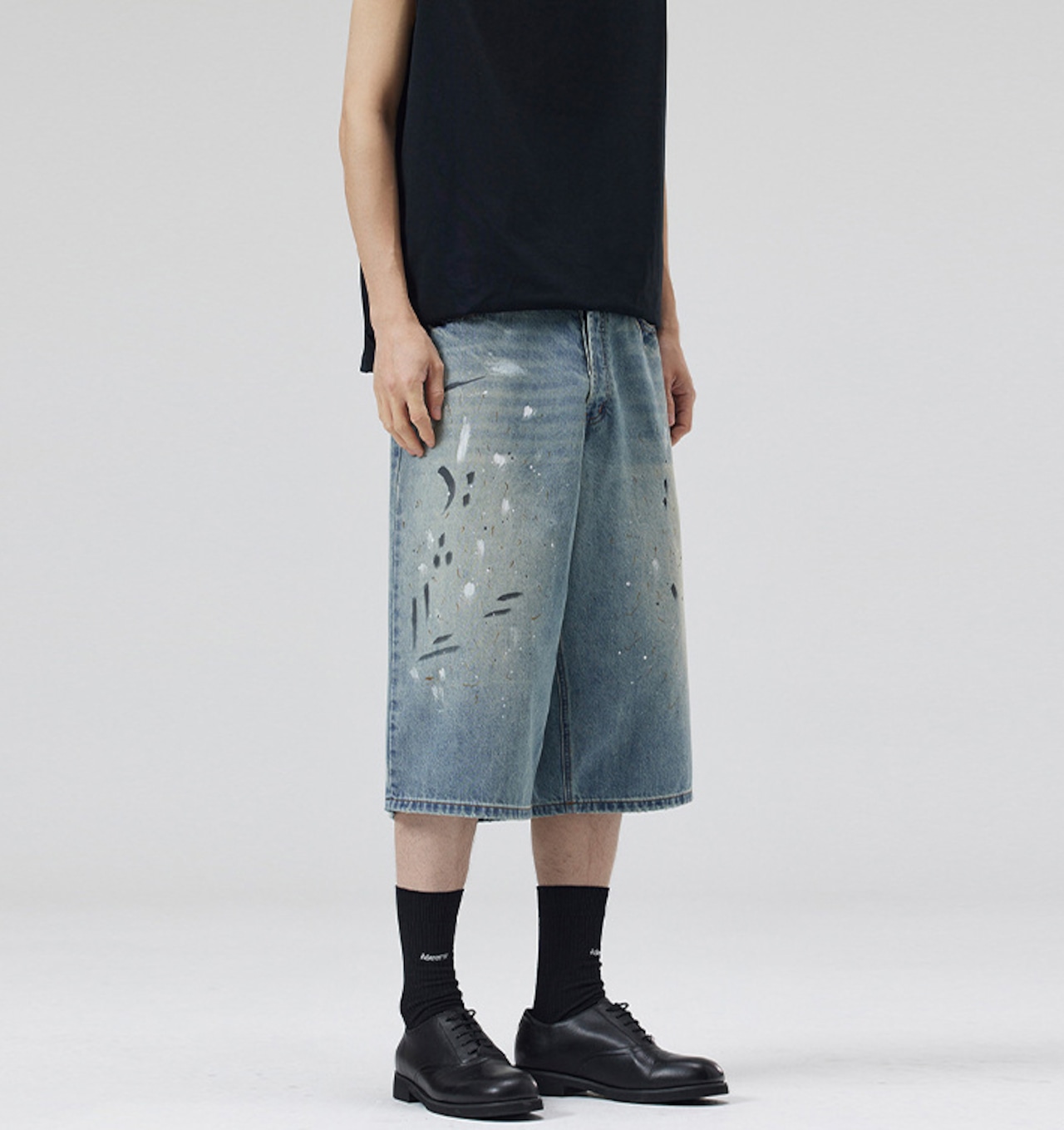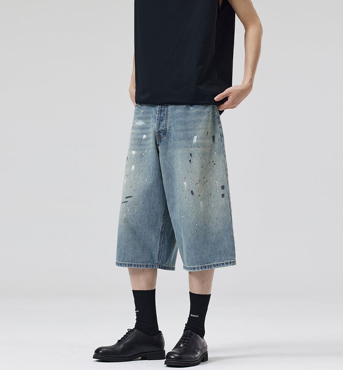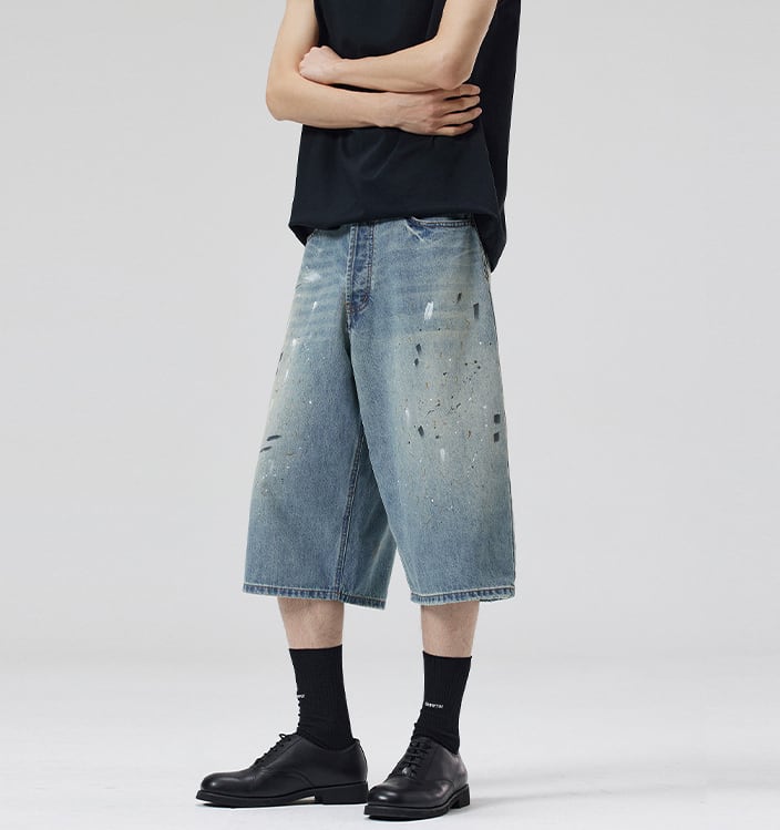 7分丈のダーティーペイントジーパン【韓流メンズファッション】