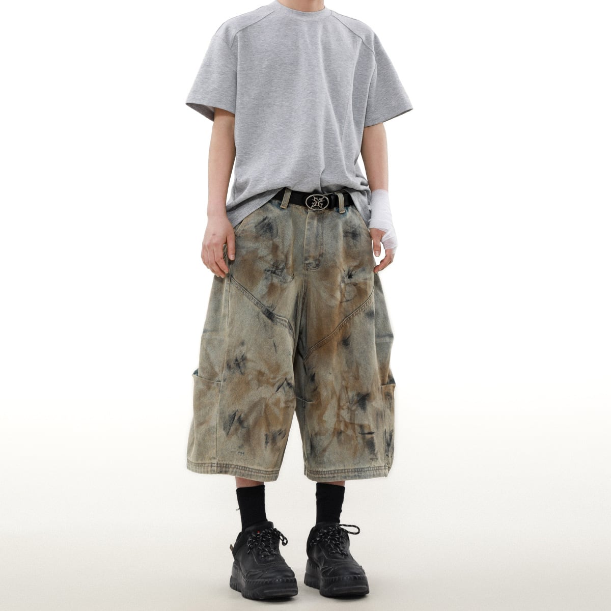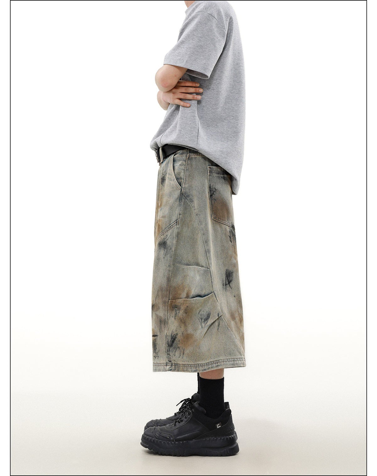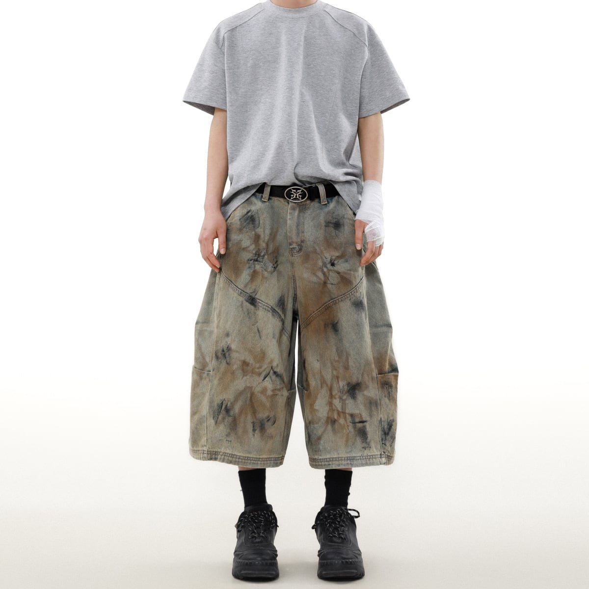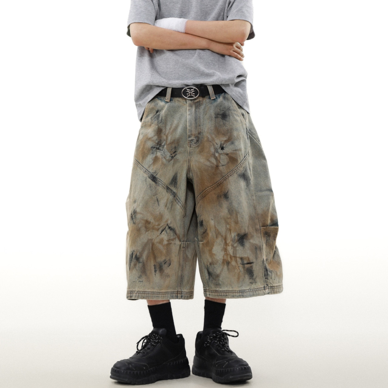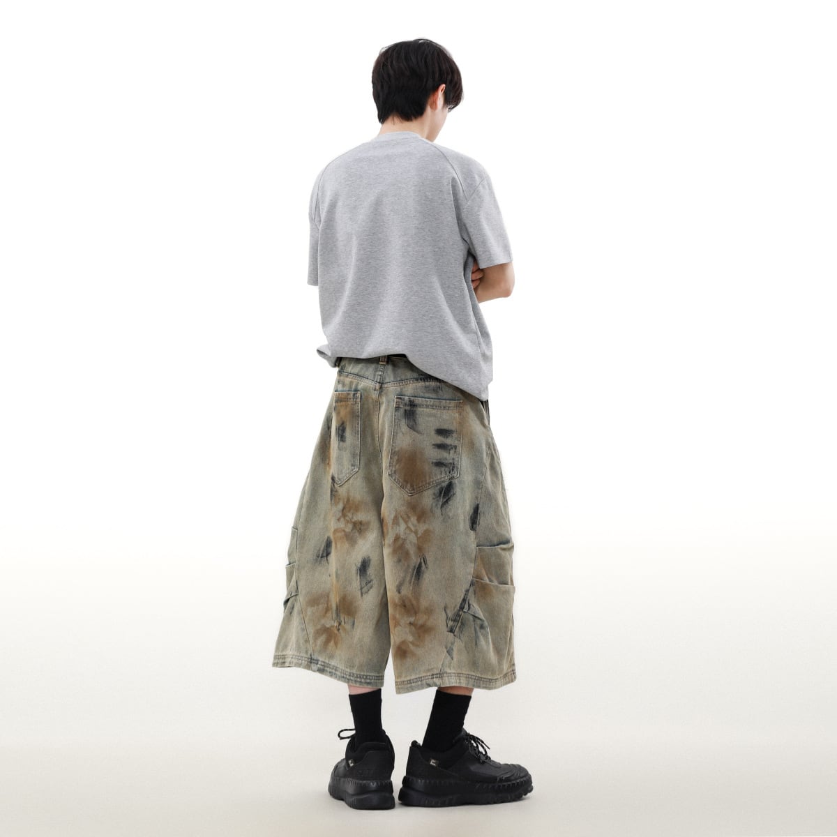 ワイドレッグクロップドパンツ・ウォッシュドダーティーデニム【韓流メンズファッション】