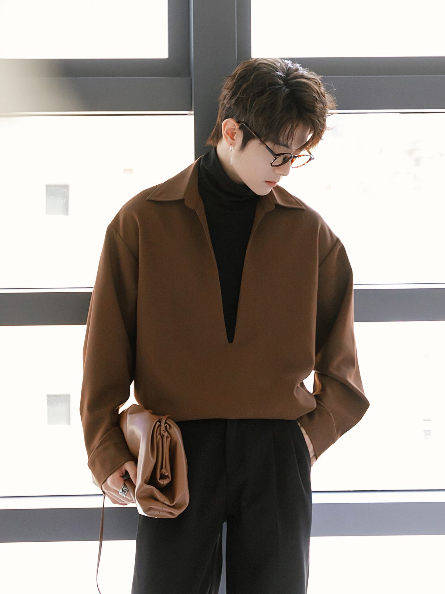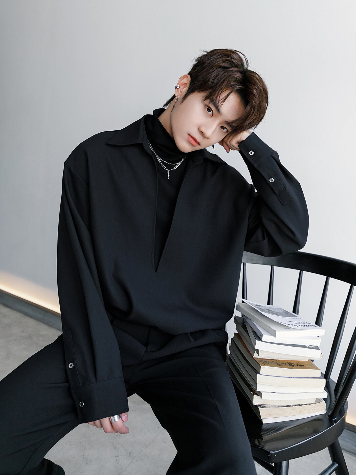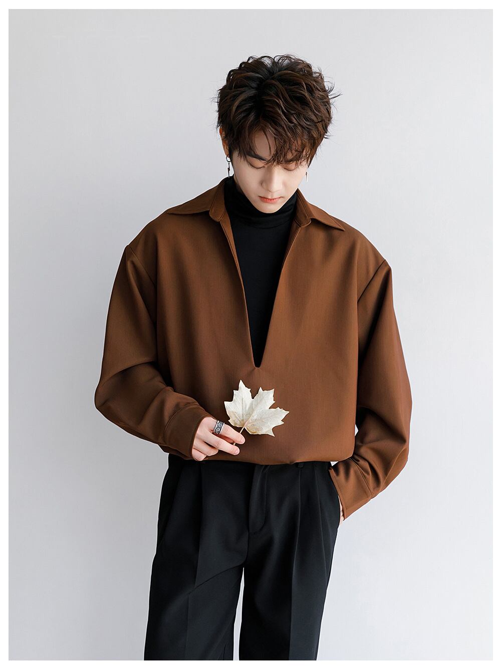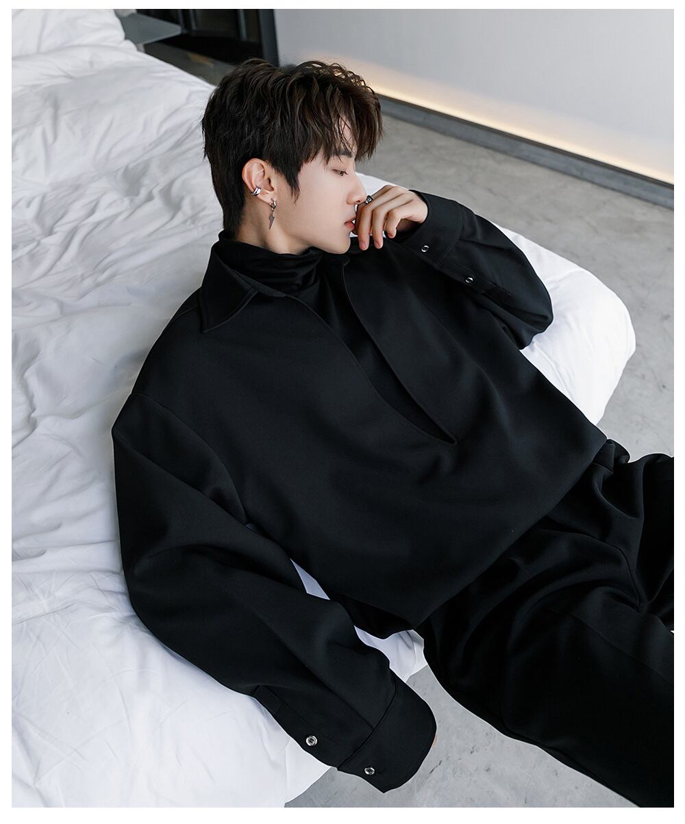 Vネック+ショートネックジョイントシャツ【韓流メンズファッション】