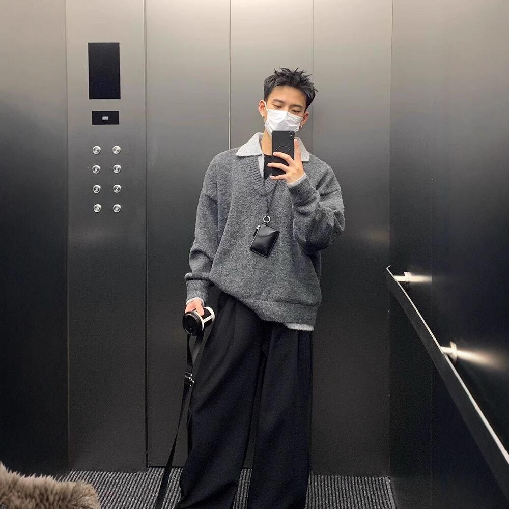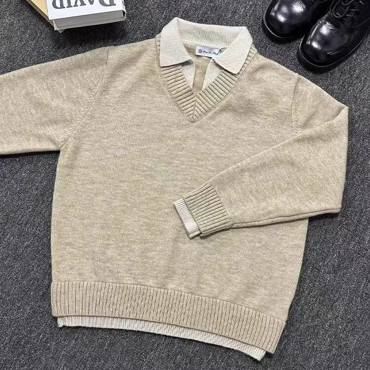 ASS Vネックのセーター+ポロ襟ジョイントシャツ【韓流メンズファッション】