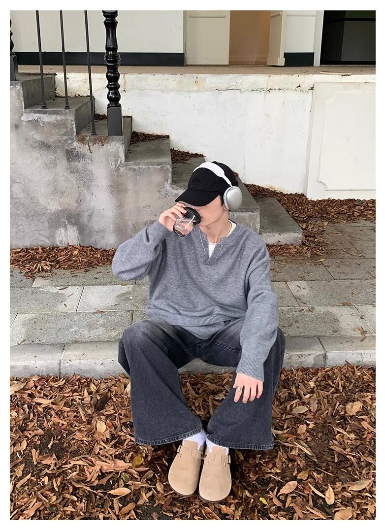 KKI Vネックプルオーバーセーター【韓流メンズファッション】
