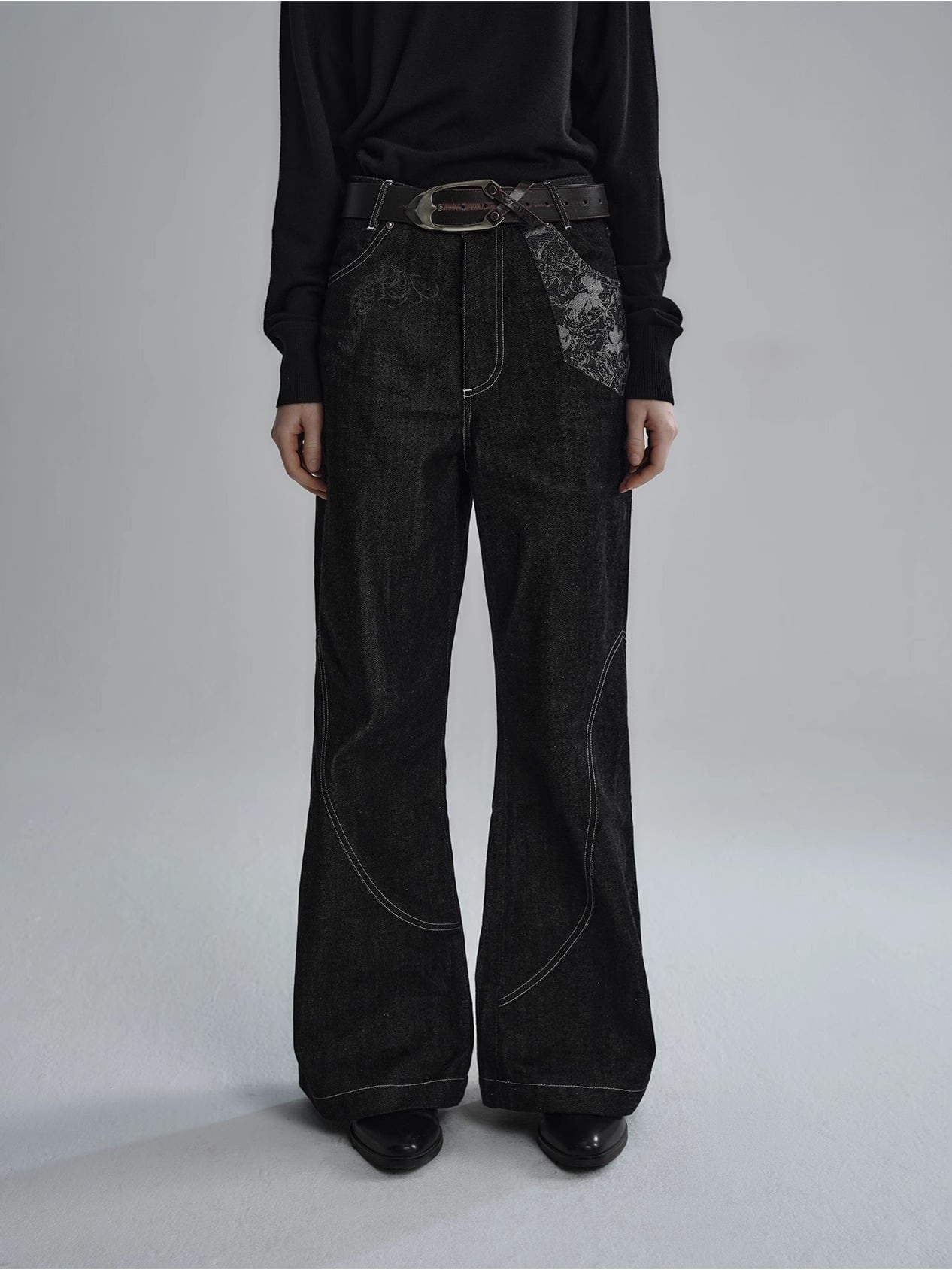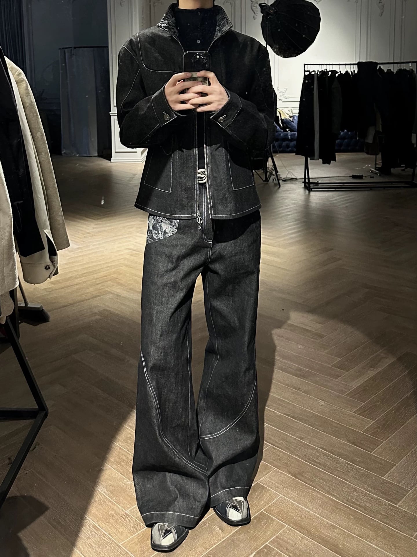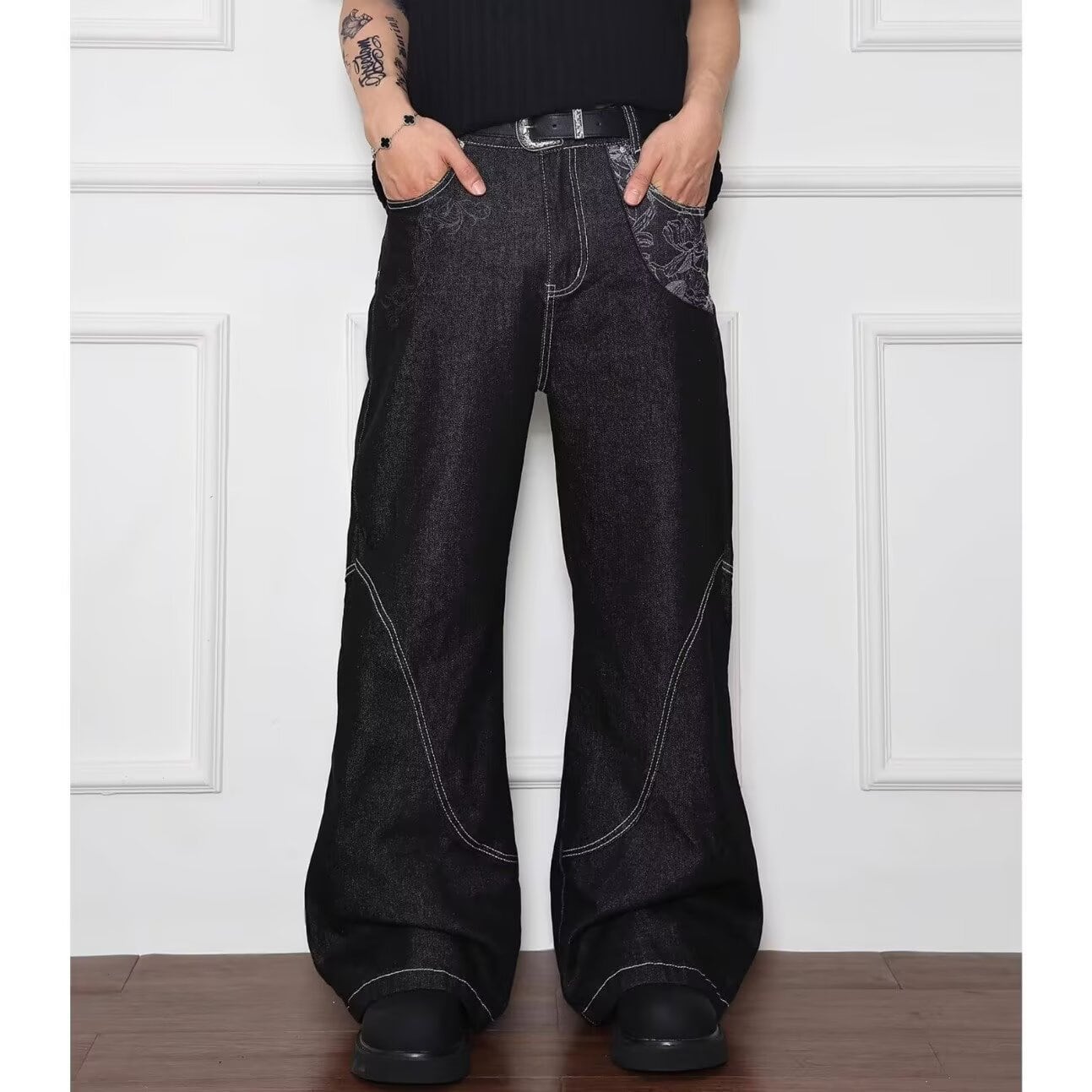 ジャカードジーンズワイドレッグ【韓流メンズファッション】